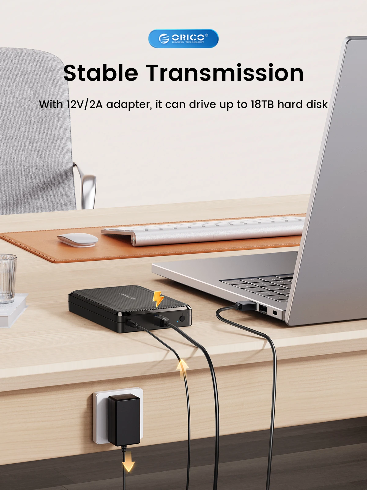 Strong smart chip , with 12V 2A power adapter can drive large hard drives easily