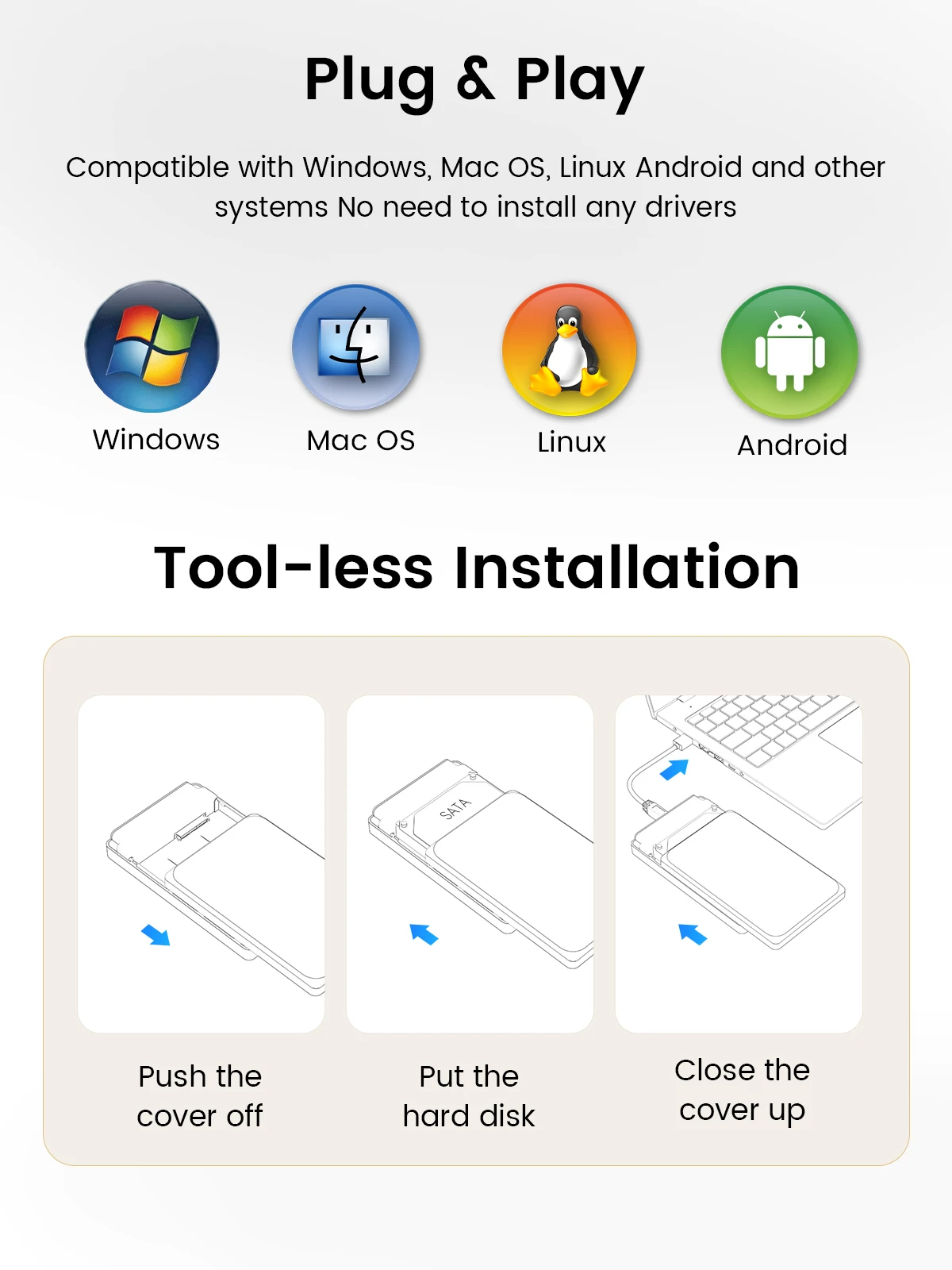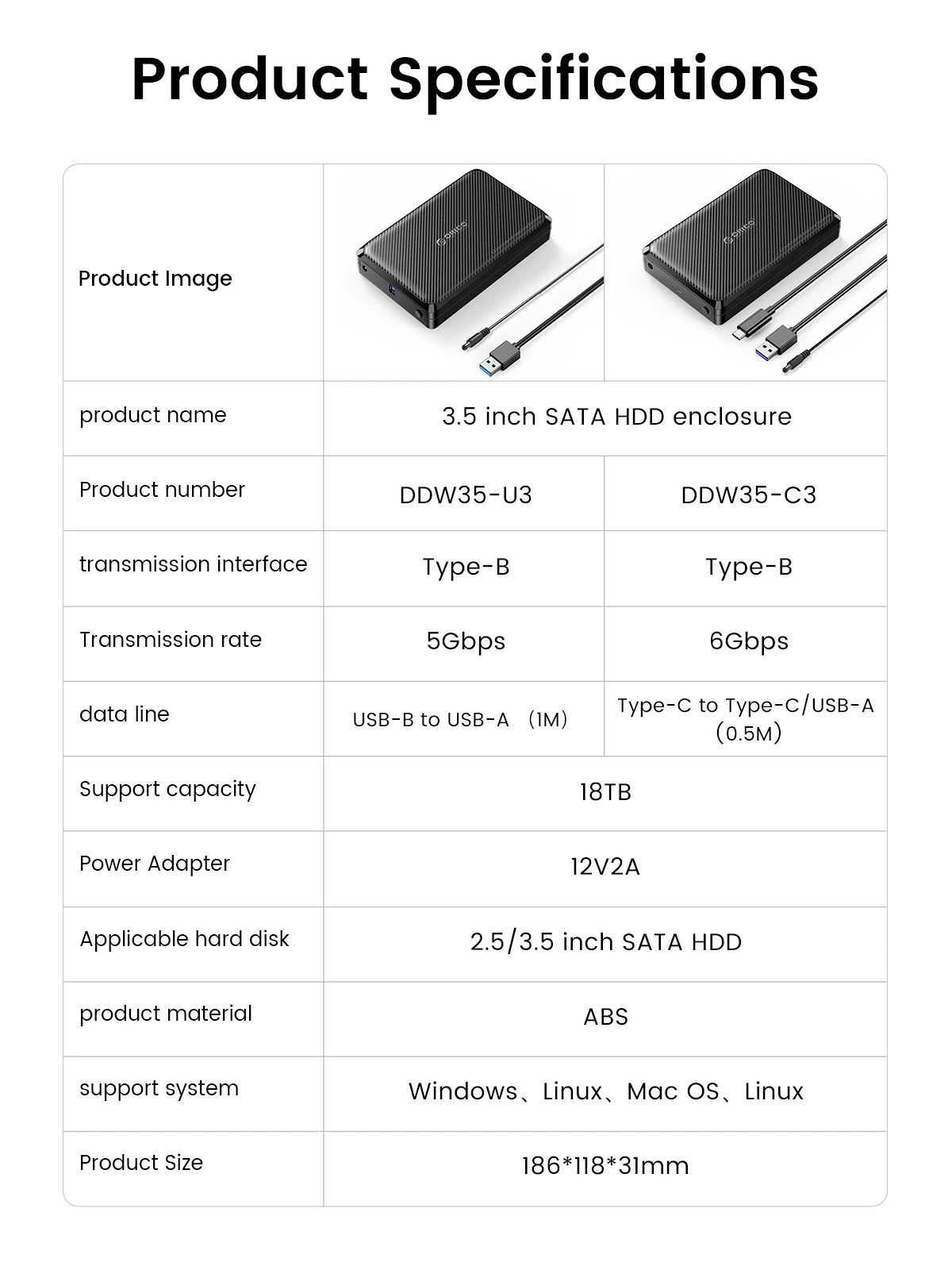 Compatile with 2.5/3.5-inch Hard Drive USB3.0&Type-C