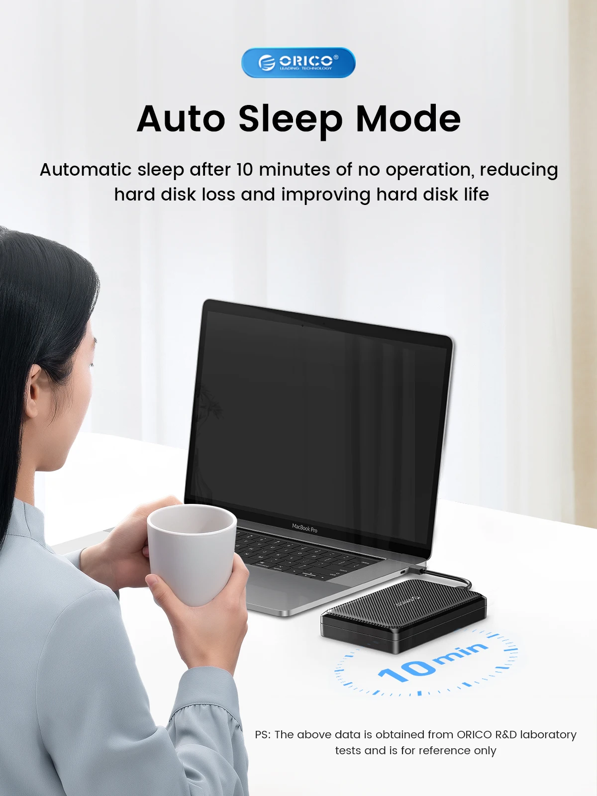 The 10-minutes auto sleep mode effectively extends the hard drive’s lifespan and avoids data loss and corruption