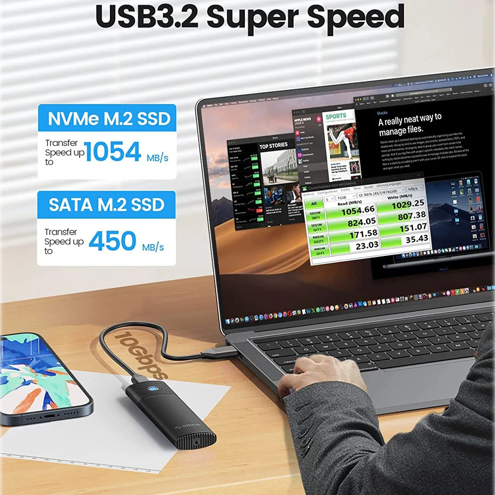 Comprar ORICO-carcasa M.2 NGFF NVMe, carcasa SSD M2 NVMe NGFF 10gbps PCIe SSD, carcasa portátil USB C 3,2 Gen2, herramienta libre de adaptador externo