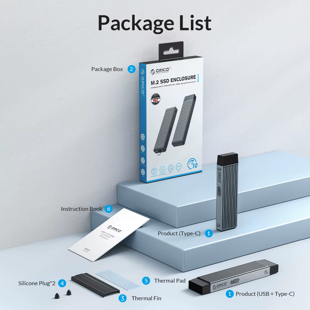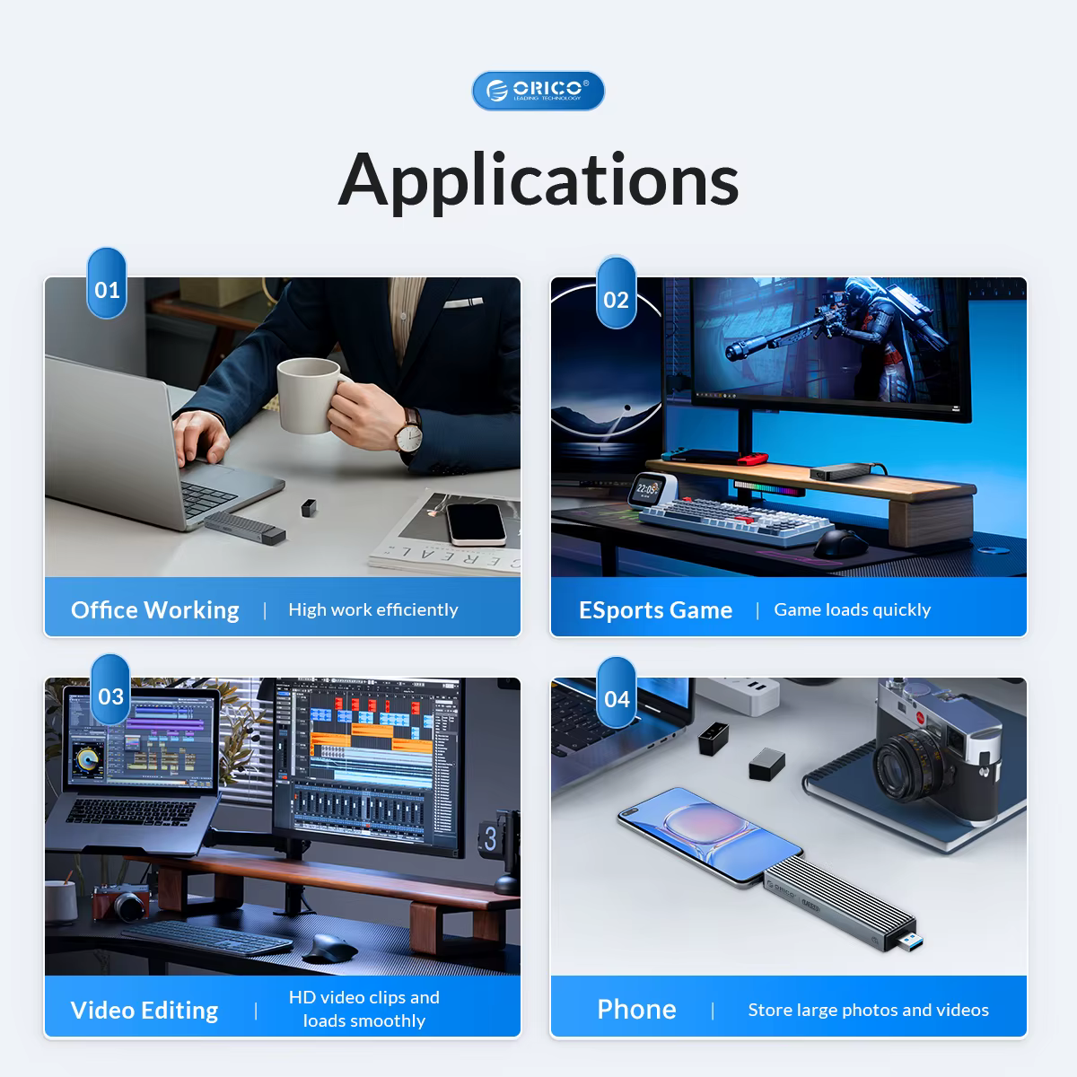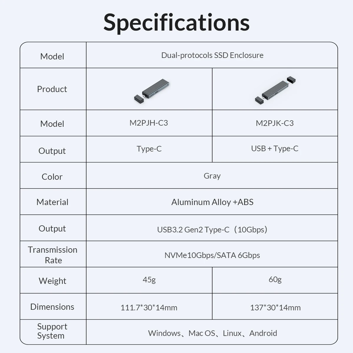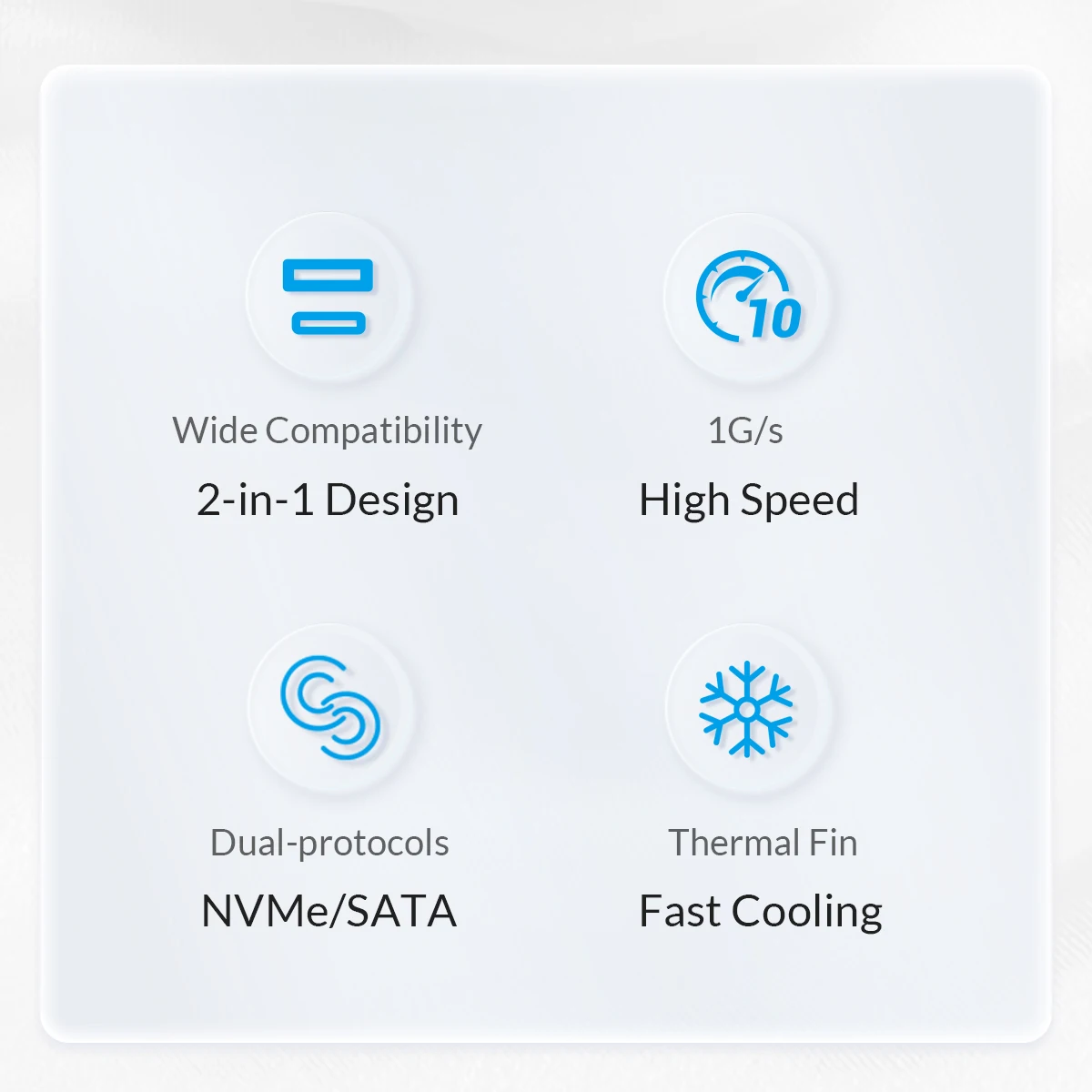 Comprar ORICO-carcasa de SSD 2 en 1, carcasa de SSD con interfaz Dual USB A tipo C M.2, compatible con M2, NVMe, clave M, SATA, NGFF, disco duro SSD con chaleco de refrigeración