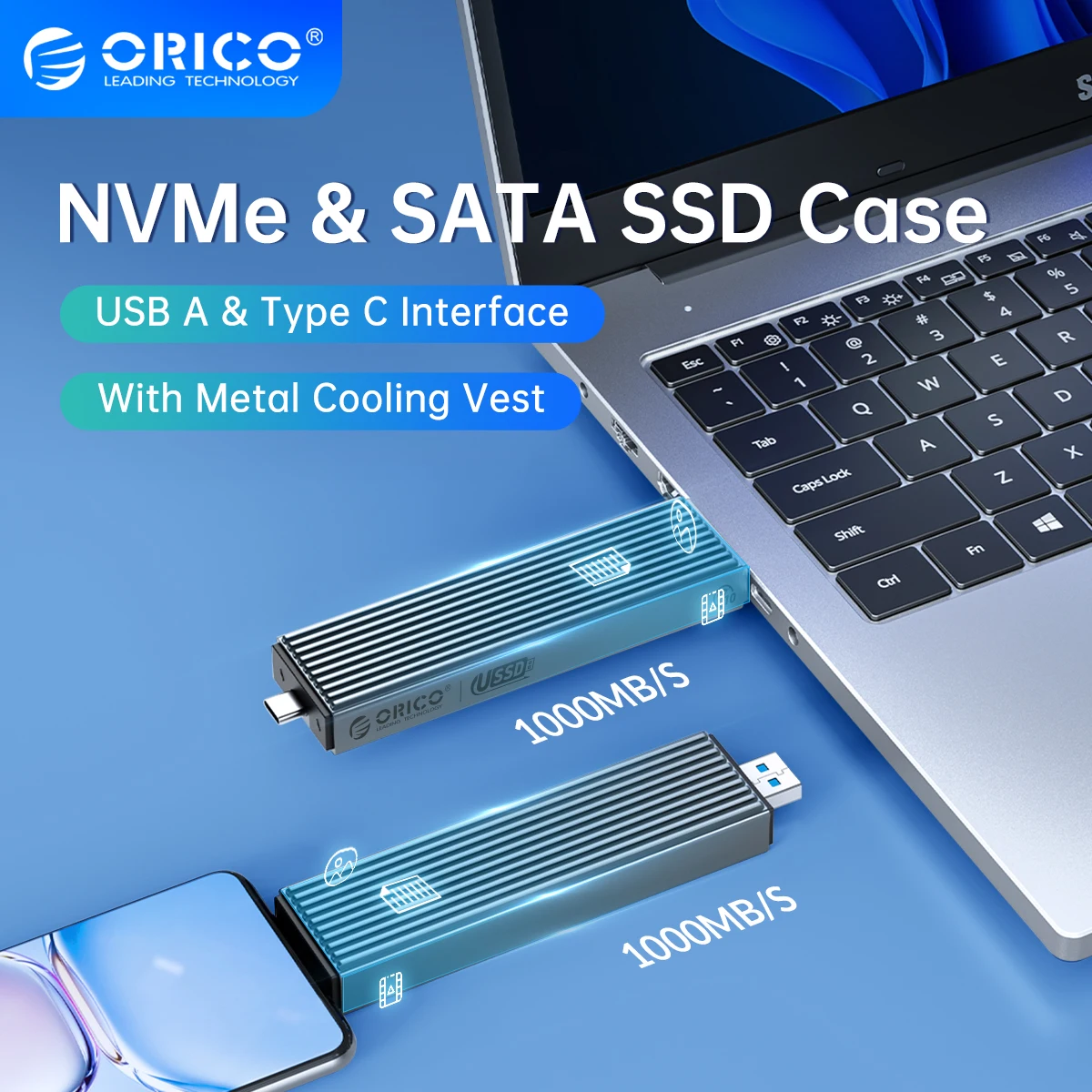 Comprar ORICO-carcasa de SSD 2 en 1, carcasa de SSD con interfaz Dual USB A tipo C M.2, compatible con M2, NVMe, clave M, SATA, NGFF, disco duro SSD con chaleco de refrigeración