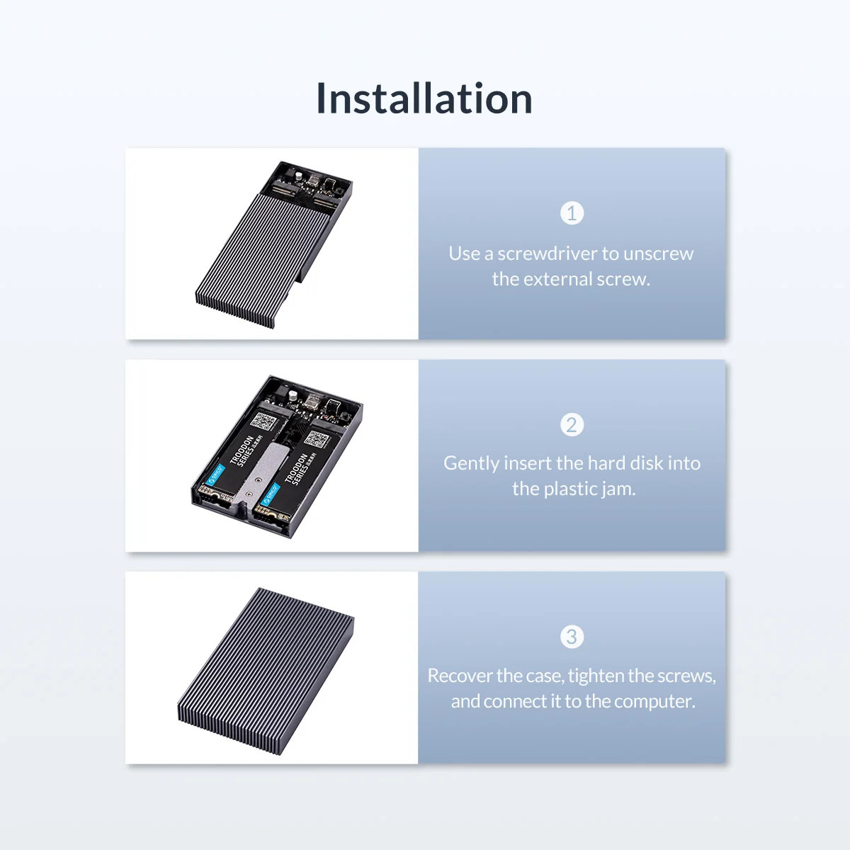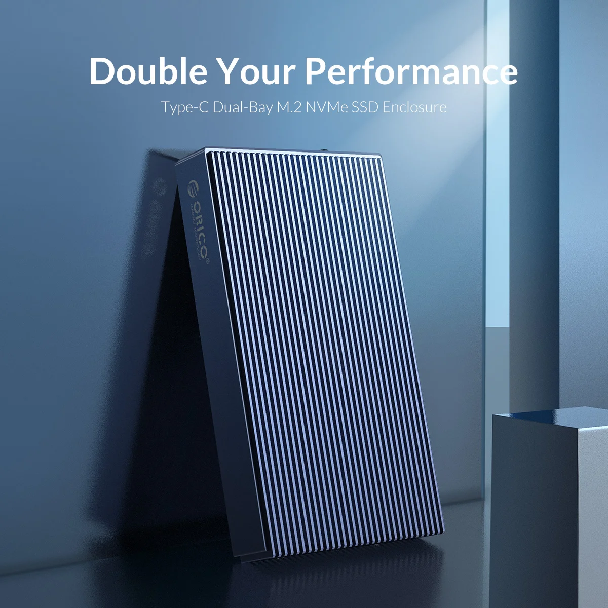 Comprar ORICO-carcasa SSD de aluminio de doble bahía, NVME M.2, USB C 3,1 Gen2 10gbps para clave M y M/B, NVME PCIe SSD con adaptador de corriente 5V4A