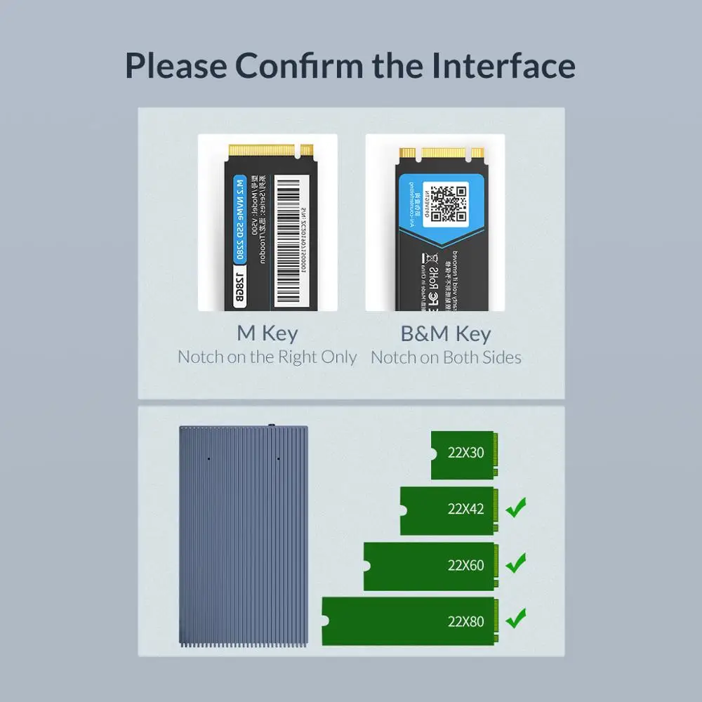 Comprar ORICO-carcasa SSD de aluminio de doble bahía, NVME M.2, USB C 3,1 Gen2 10gbps para clave M y M/B, NVME PCIe SSD con adaptador de corriente 5V4A