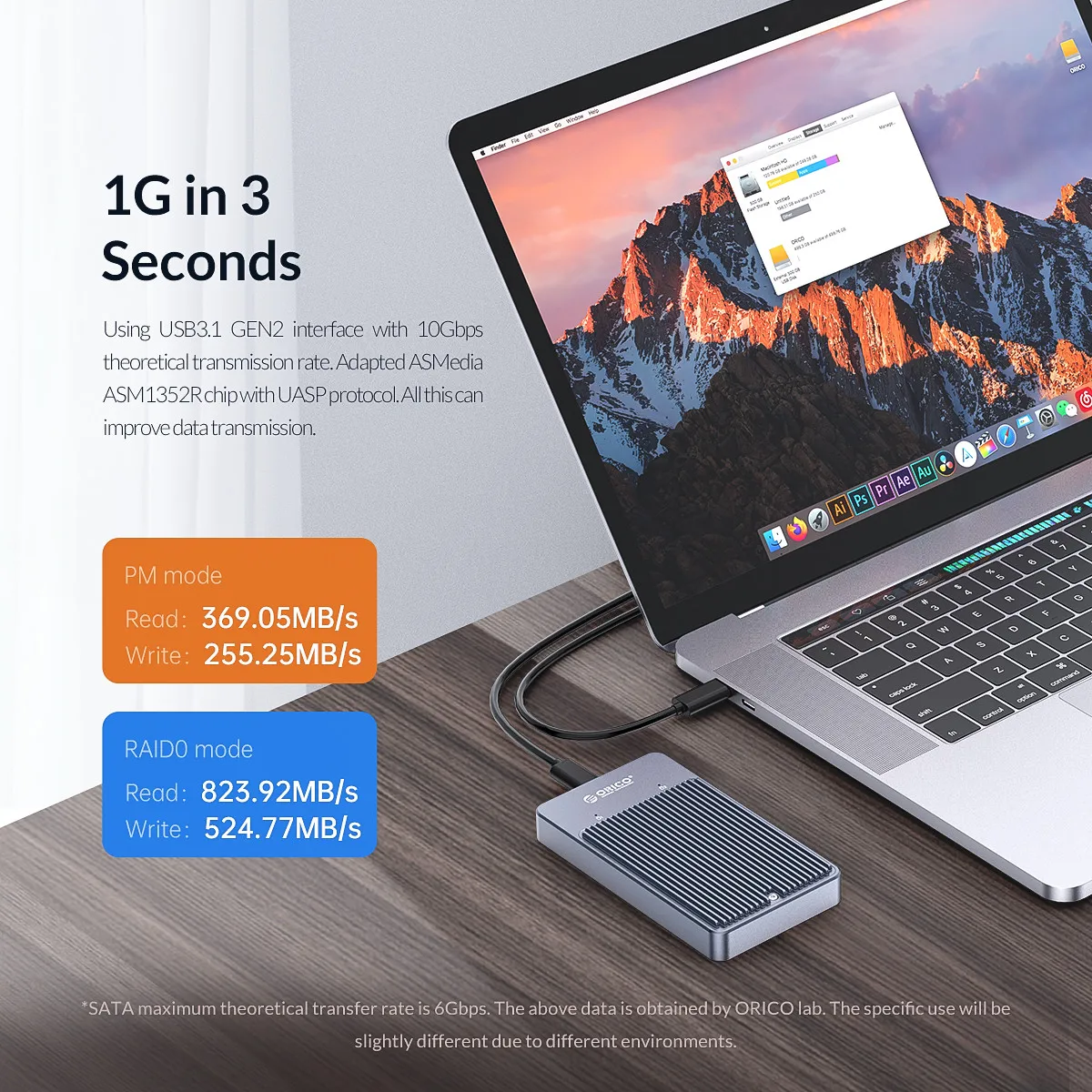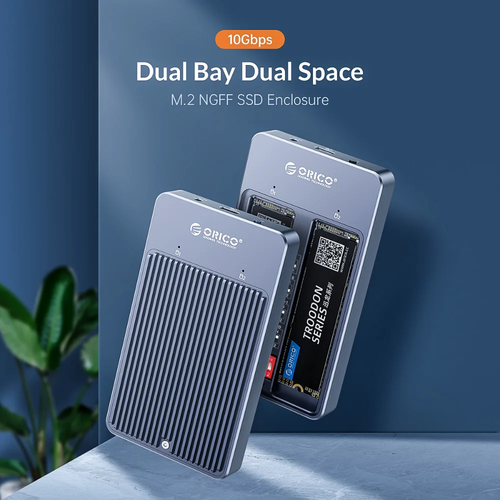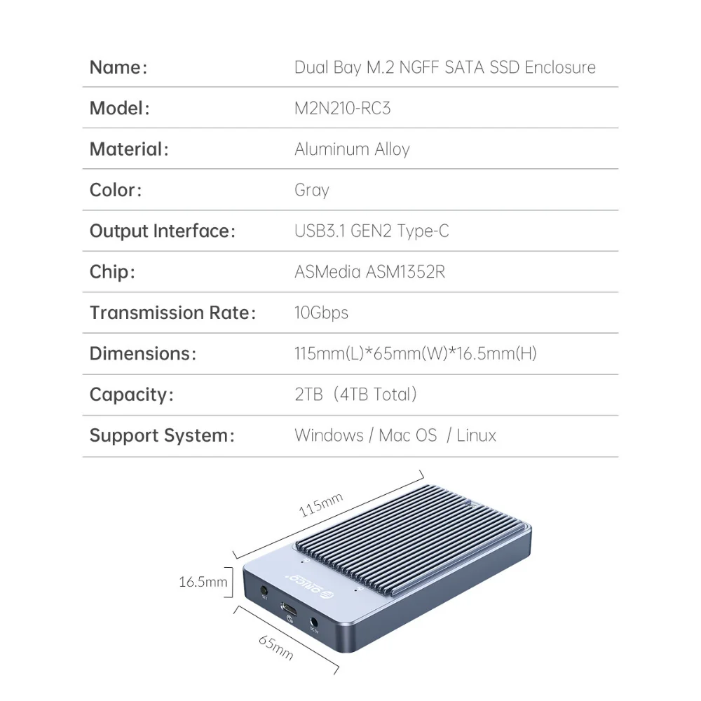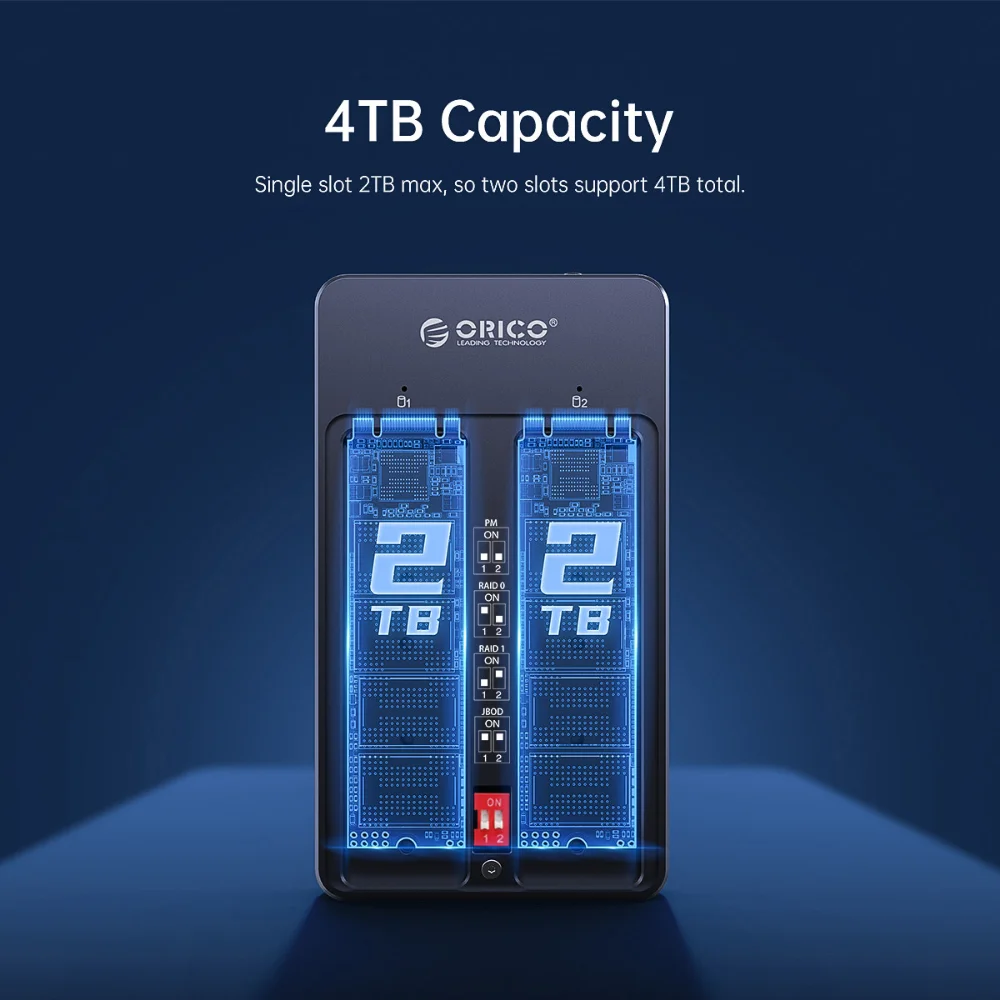 Comprar ORICO-carcasa de SSD LSDT RAID Dual Bay M2, carcasa compatible con disco SSD M.2 NGFF SATA para clave B y B + M, compatible con PM/RAID 0/RAID 1/modo JBOD