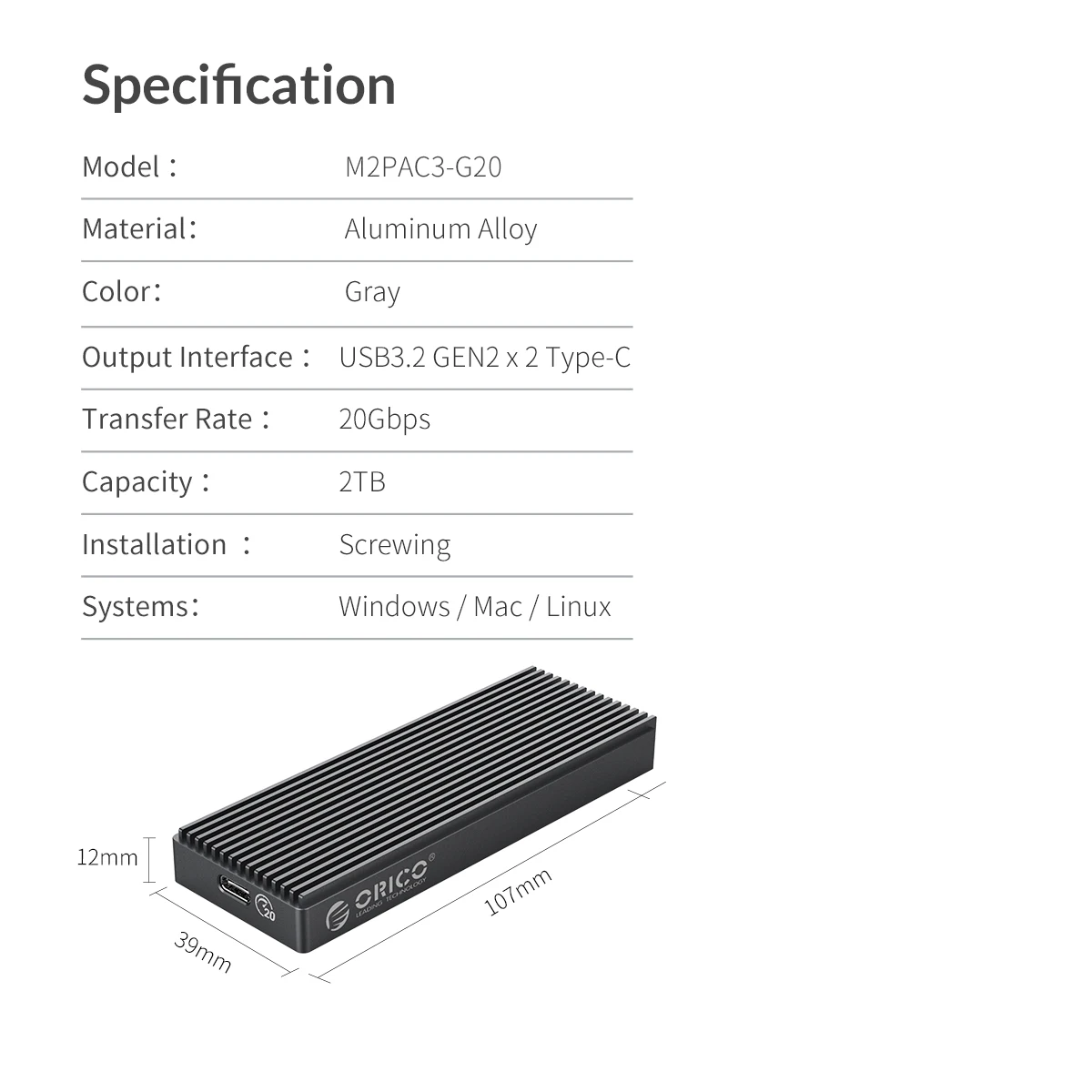 Comprar ORICO-carcasa para SSD M2, carcasa NVMe USB tipo C Gen2, 10gbps, PCIe, M2, SATA, NGFF, 5gbps, M.2, NVME