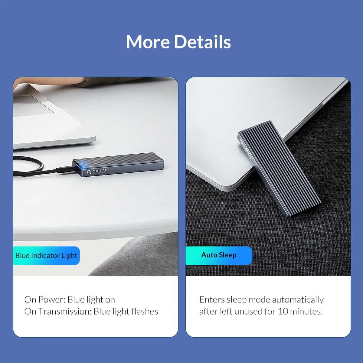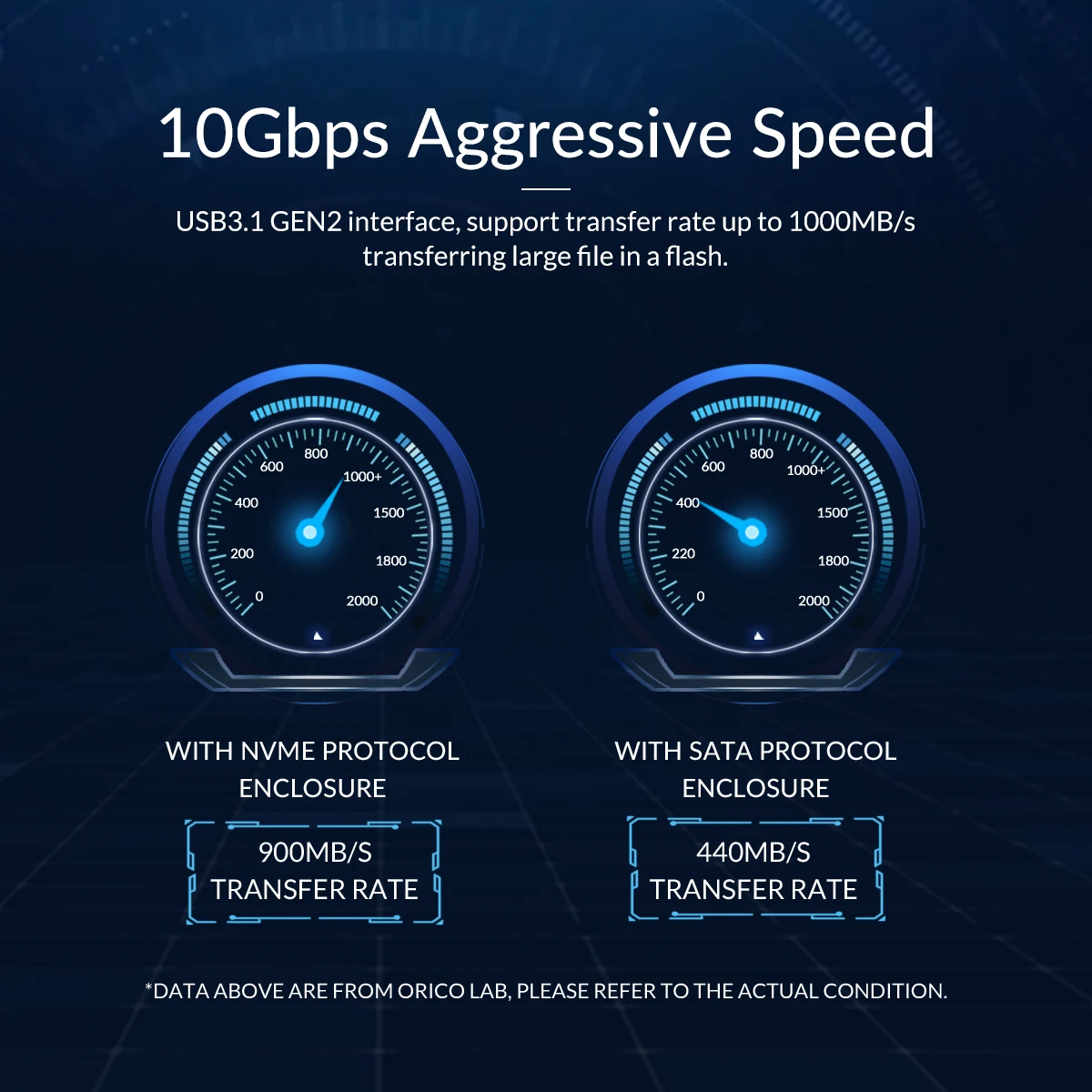 -PLUG and PLAY: Adaptador ORICO NVME M.2 SSD compatible con intercambiable en caliente, Plug and Play, no requiere controlador.
