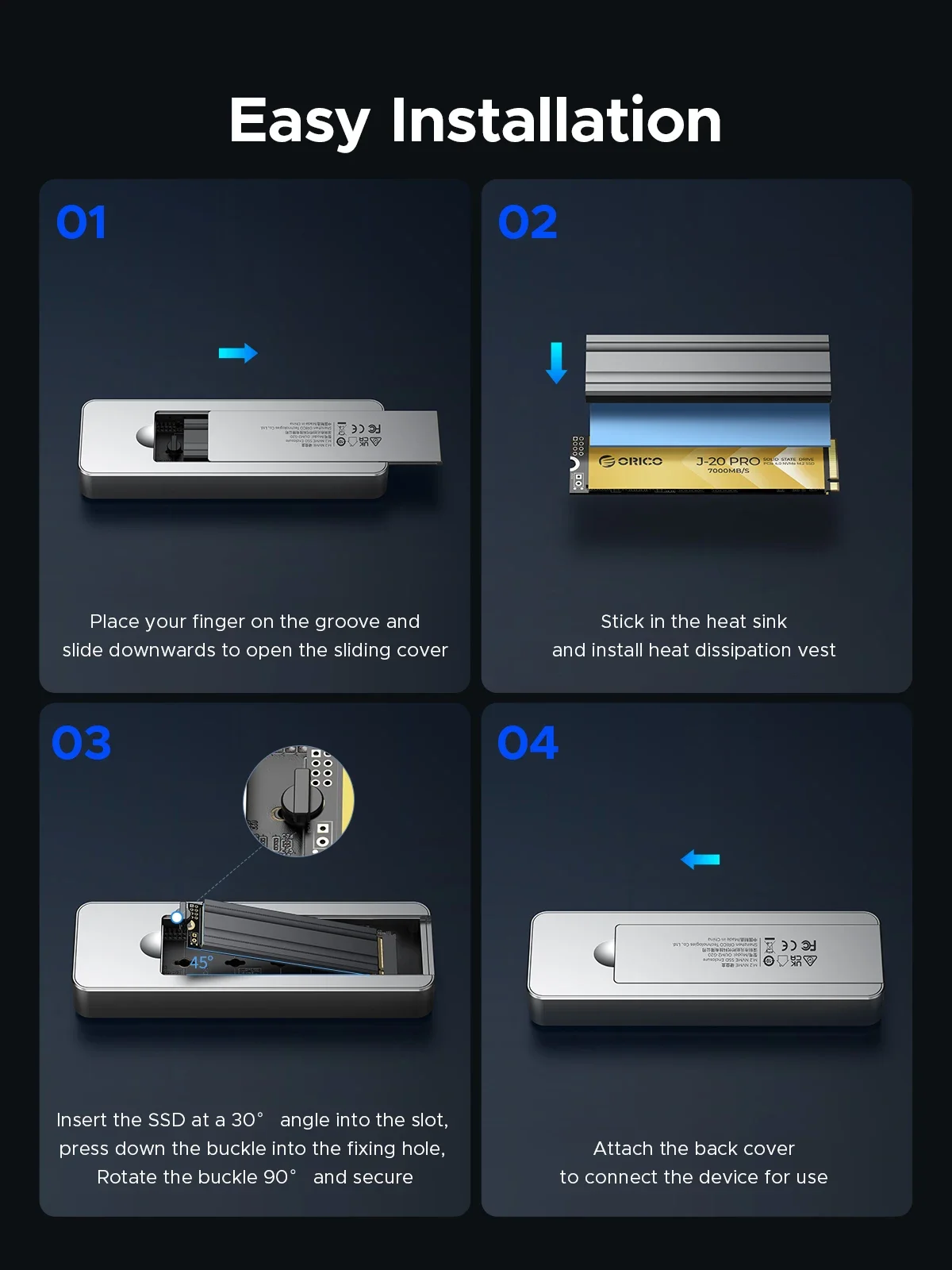 Comprar ORICO-carcasa SSD M.2 NVMe de 40Gbps, USB 4, 8TB, con ventilador de refrigeración, PCIe4.0, carcasa de aluminio Compatible con Thunderbolt 3/4 para mac