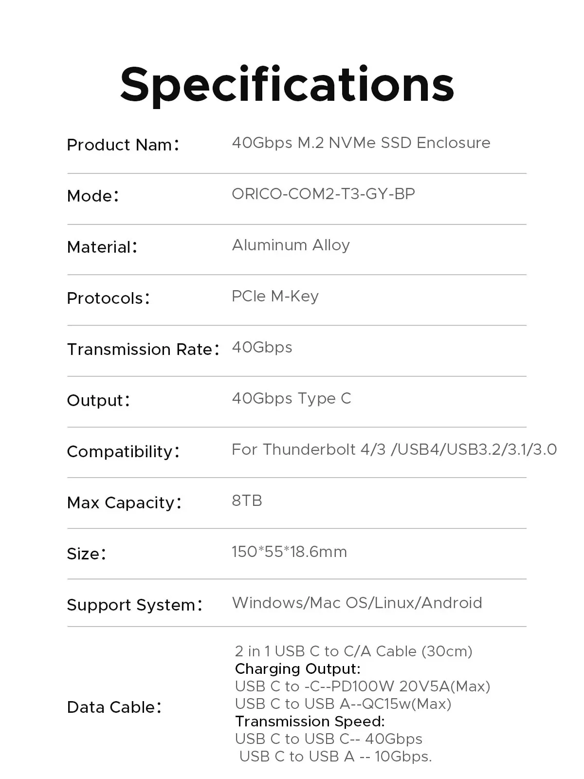 Si usted es diseñador, viajero de negocios, fotógrafo, videógrafo o creador de contenido, los gabinetes ORICO USB4 le permiten manejar con confianza grandes cantidades de videos, imágenes, archivos y datos digitales de forma rápida y sencilla.Amplíe su almacenamiento digital, haciendo que su trabajo y su vida sean más fáciles y eficientes.