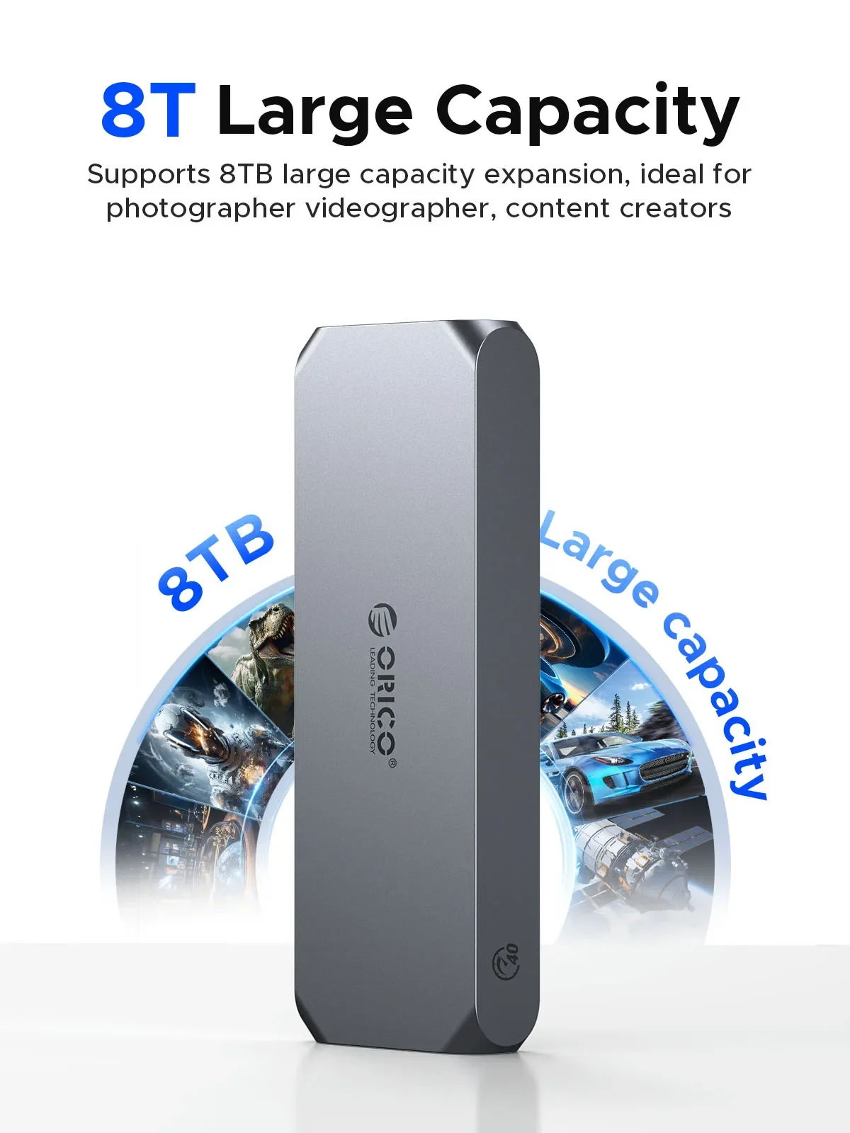 Si usted es diseñador, viajero de negocios, fotógrafo, videógrafo o creador de contenido, los gabinetes ORICO USB4 le permiten manejar con confianza grandes cantidades de videos, imágenes, archivos y datos digitales de forma rápida y sencilla.Amplíe su almacenamiento digital, haciendo que su trabajo y su vida sean más fáciles y eficientes.