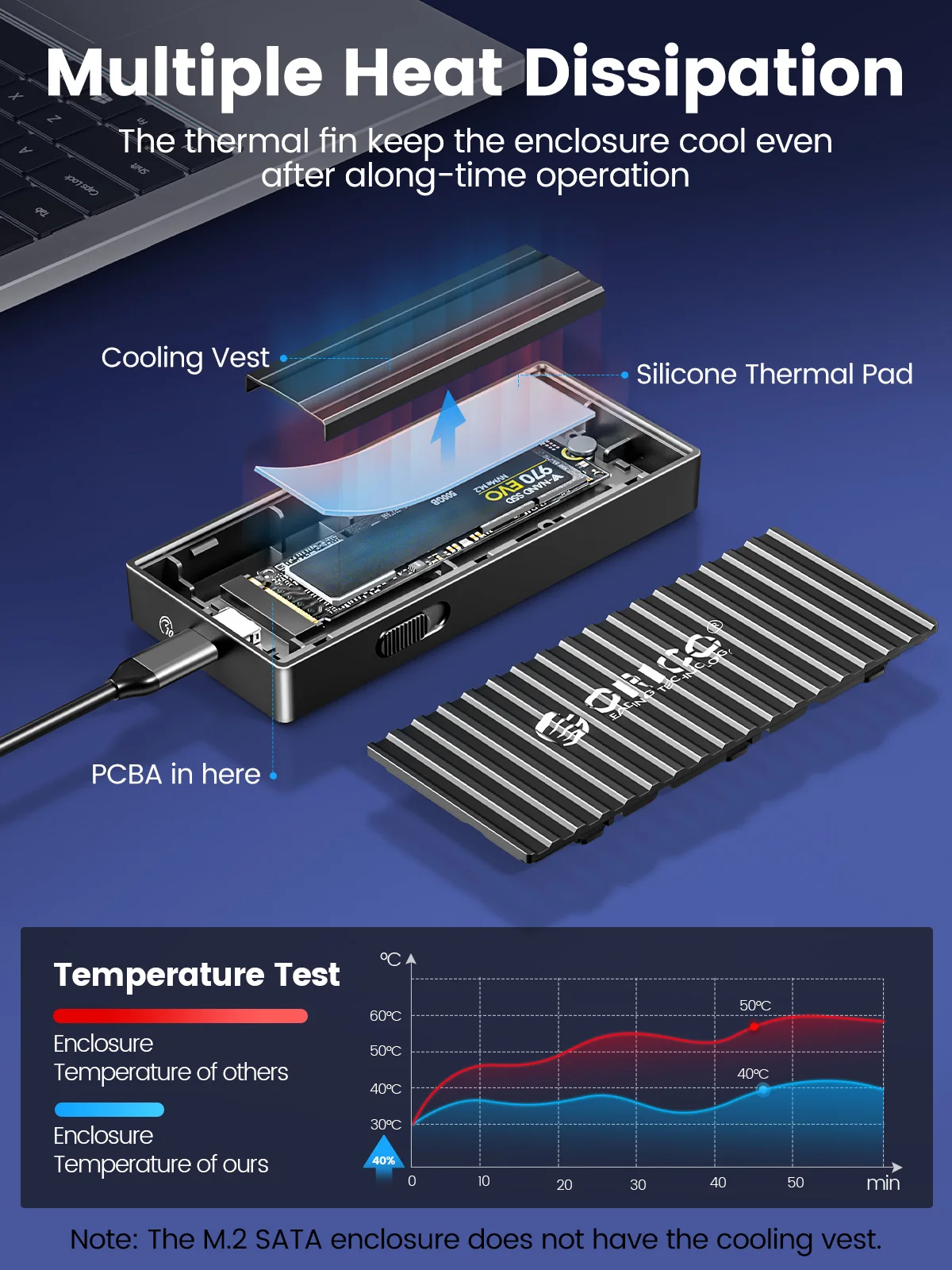 Chaleco de refrigeración + almohadilla térmica de silicona + ventilador integrado, triple reducción de calor, prolonga la vida útil y el tiempo de servicio de su SSD