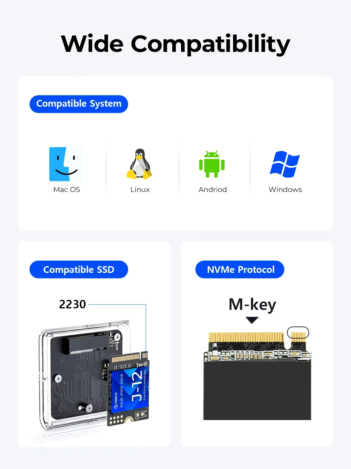 Plug and play,compatible con Windows,Mac OS,Linux,Android. Como M.2 NVMe M Key SSD.