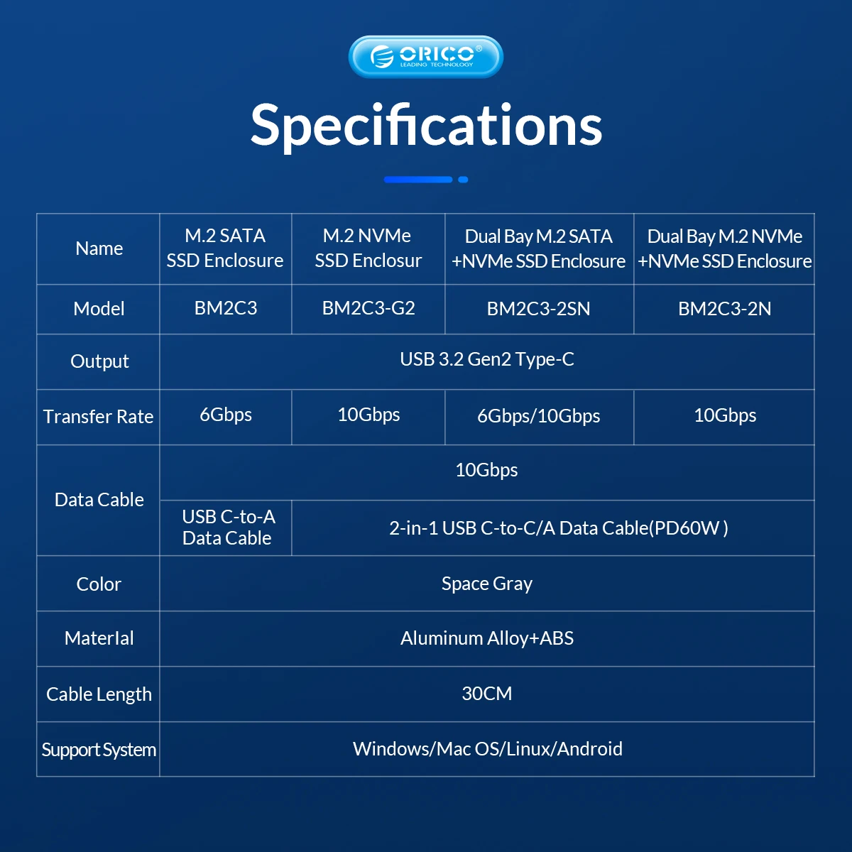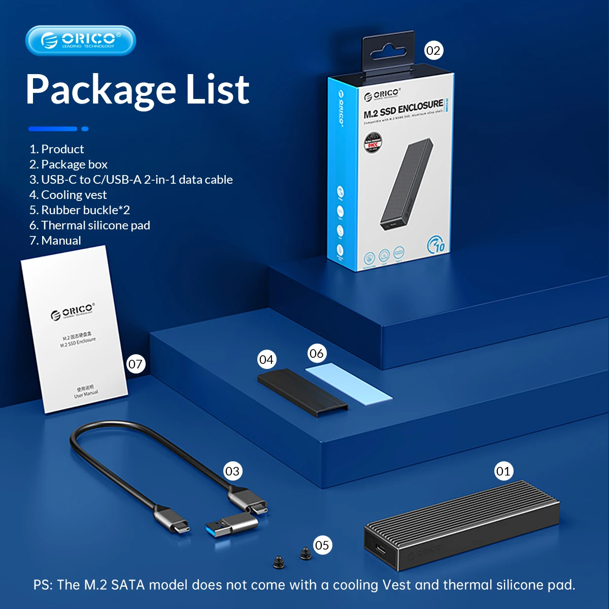 Comprar ORICO-carcasa de SSD M.2 NVME SATA, adaptador externo gratuito, USB C 3,1, NVME, PCIe, M.2