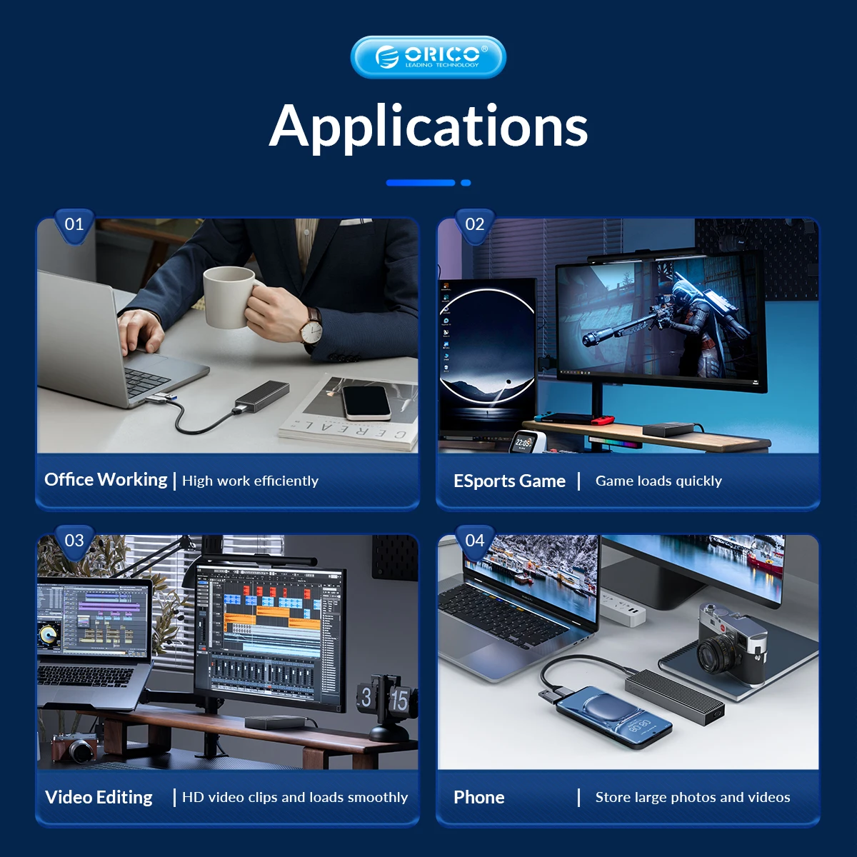Caja ORICO NVMe SSD con controlador IC de alto rendimiento, admite protocolo de aceleración UASP y funciones Trim, SMART, que pueden mejorar eficazmente la velocidad del SSD, proteger el funcionamiento de los datos y extender la vida útil del SSD.