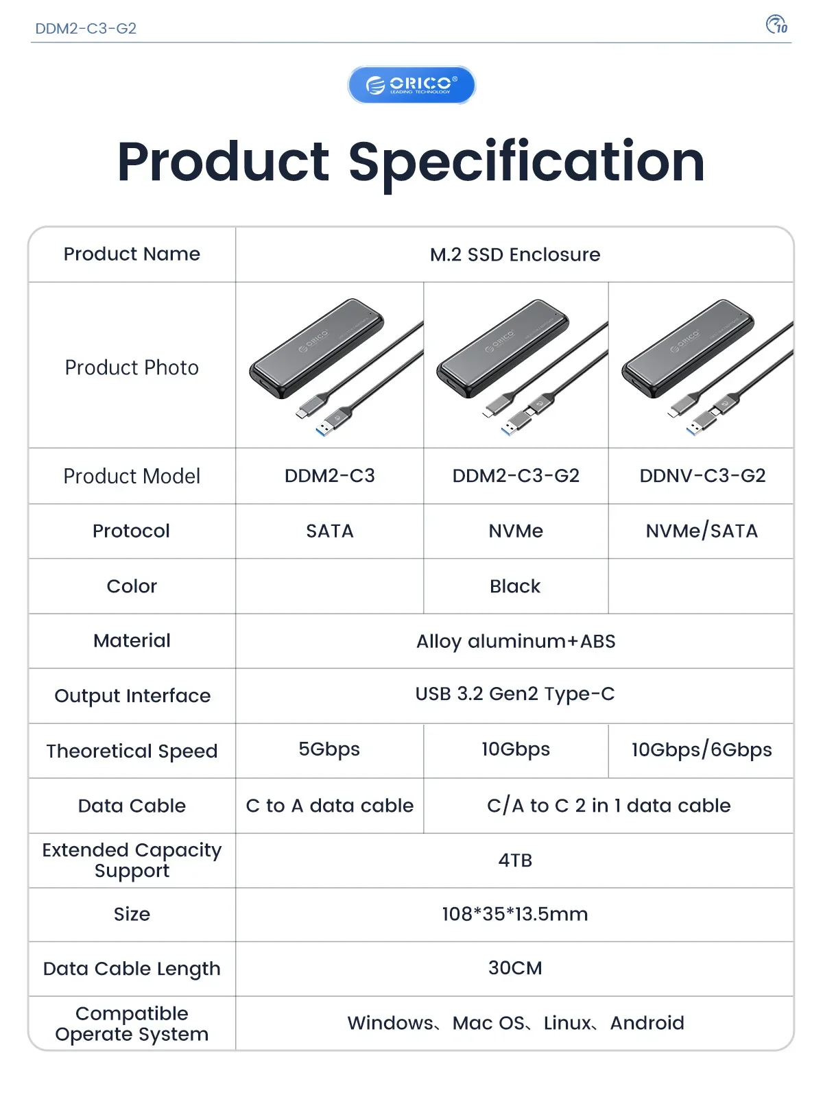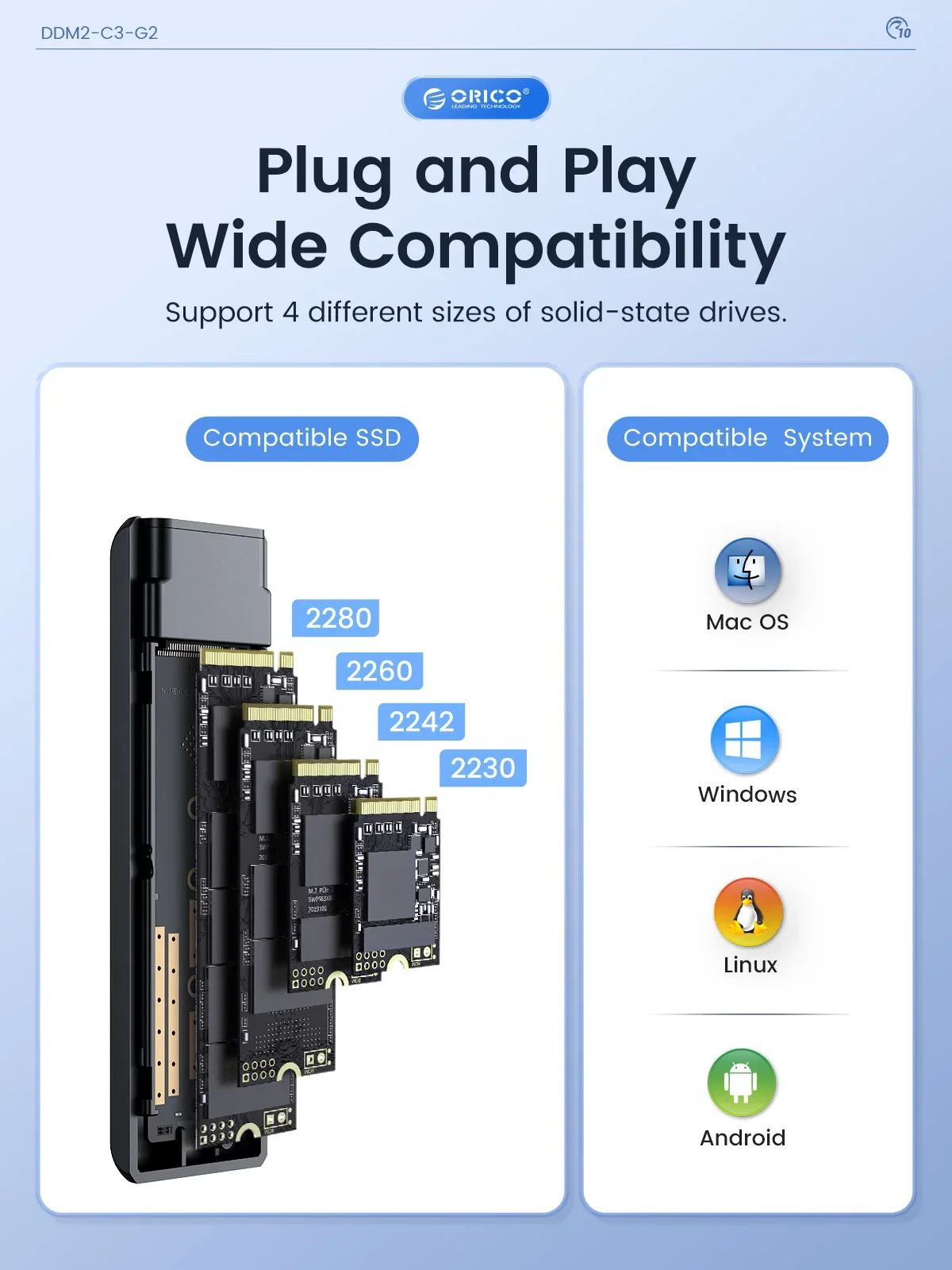 Basándonos en los comentarios de todos los clientes de Orico, hemos producido una carcasa SSD más pequeña y compatible con un diseño de estilo empresarial.