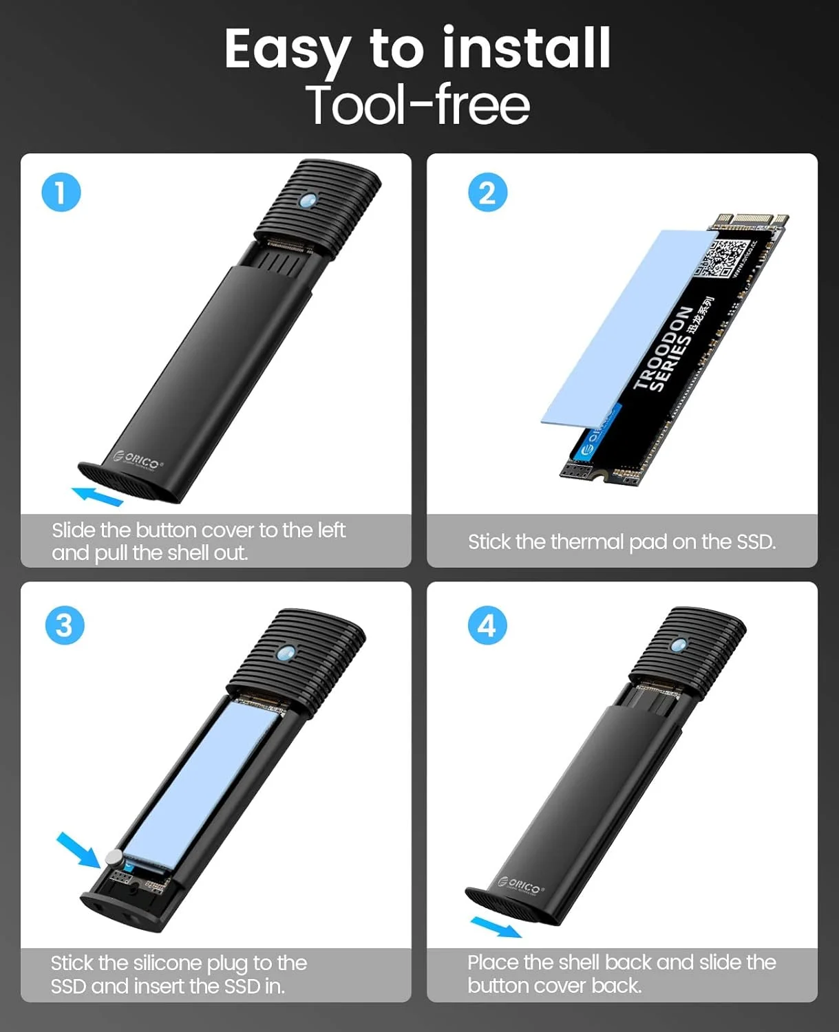 Comprar ORICO-carcasa SSD M.2 SATA NGFF USB 3,1 tipo C, adaptador externo de carcasa de estado sólido de 5Gbps para SSD de 4TB, 2280/2260/2242/2230