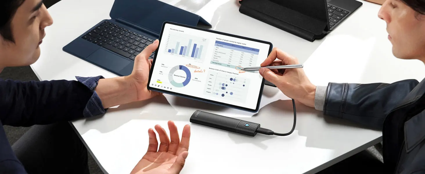 Las barras de cobre con agujeros en la placa PCBA irradian rápidamente calor desde el SSD interno a la carcasa de aluminio externa. La carcasa externa con aleta de intercambio de calor, para una mejor disipación del calor bajo transmisión de alta velocidad.