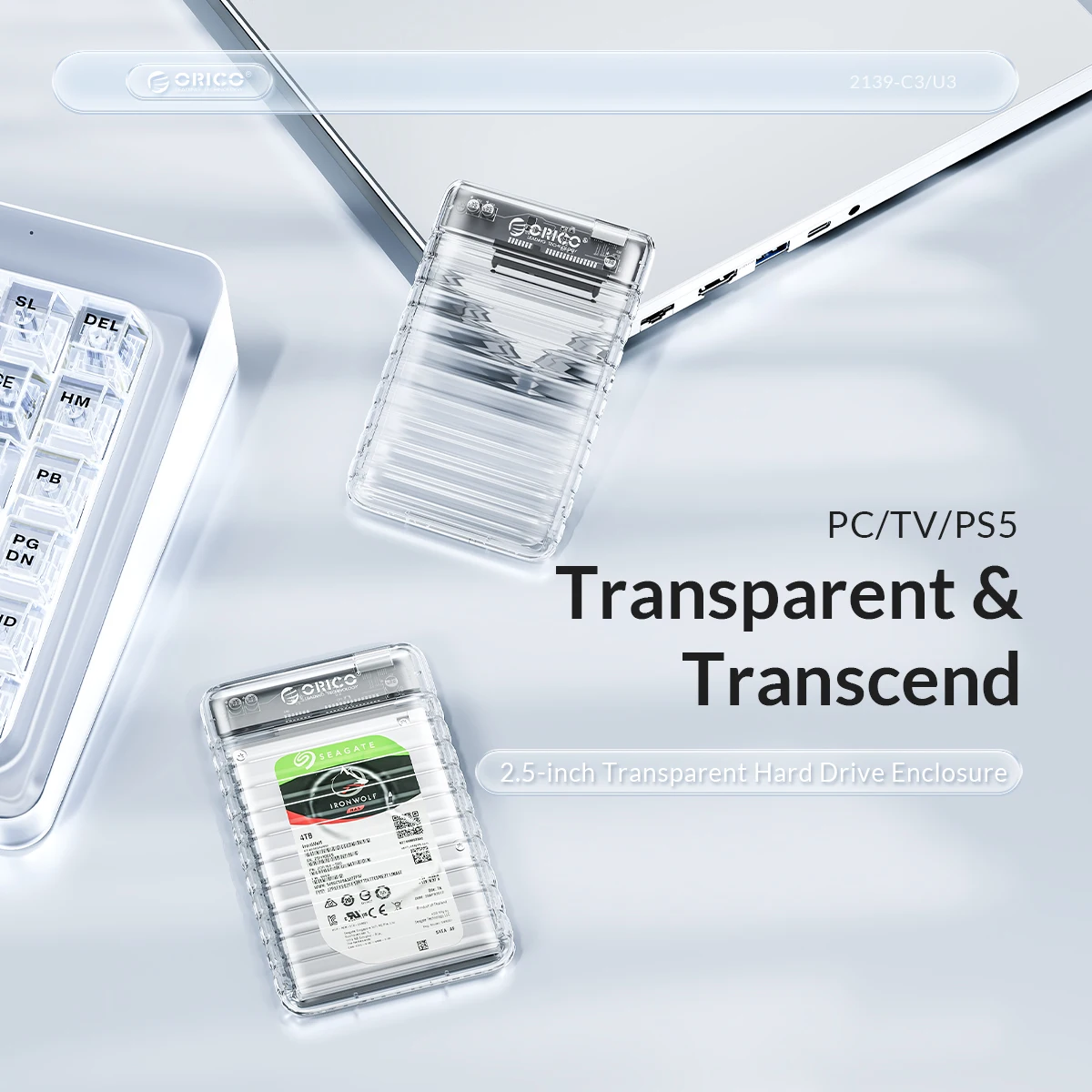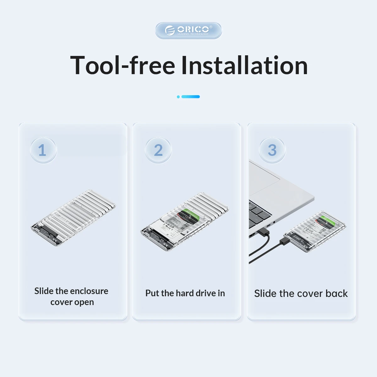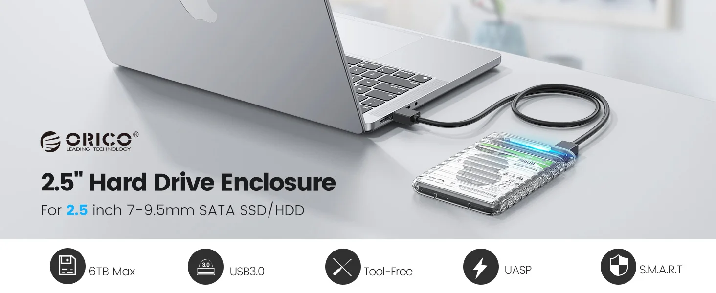 Comprar ORICO-carcasa transparente de disco duro SATA a USB3.0/tipo C, carcasa de disco duro externo libre de herramientas para PC, portátil, SSD/HDD de 6Gbps, 2,5 pulgadas