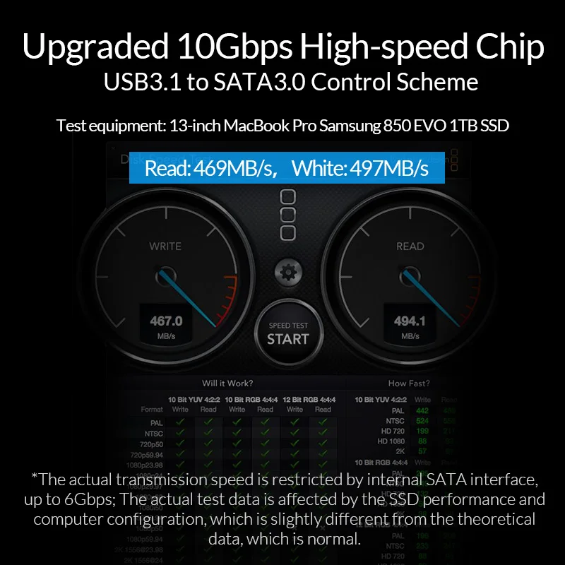 La velocidad de transferencia teórica USB3.1 Gen2 Type-C es de hasta 10 Gbps; la velocidad teórica de SATA3.0 alcanza hasta 10 Gbps, reservando más tiempo para hacer lo que quieras.