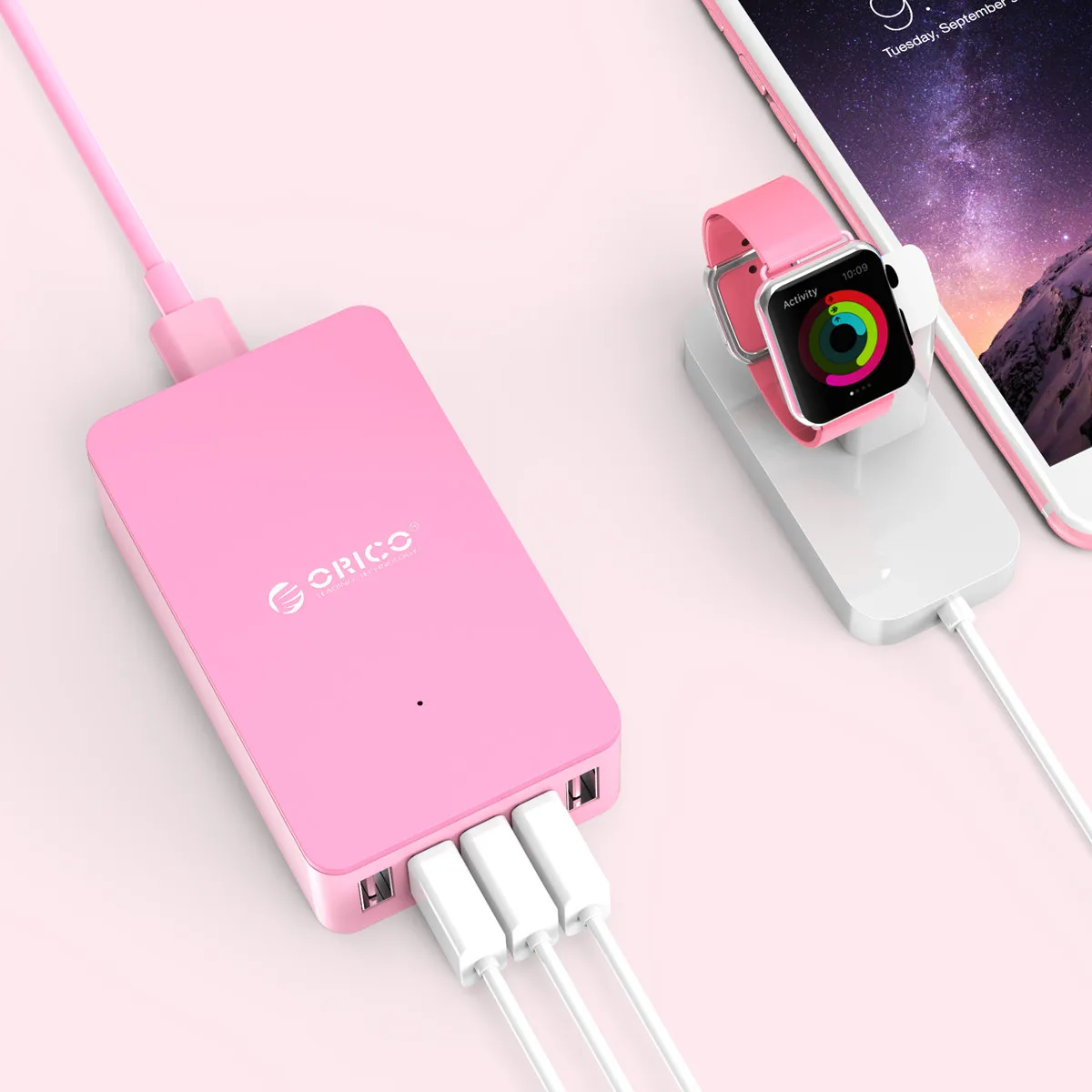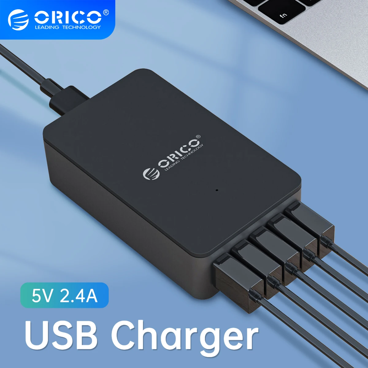 Comprar ORICO-cargador USB de 5 puertos, estación de carga de escritorio de 5v, 2.4a, 8A, 40W, para iPhone, Samsung, teléfono móvil y tableta