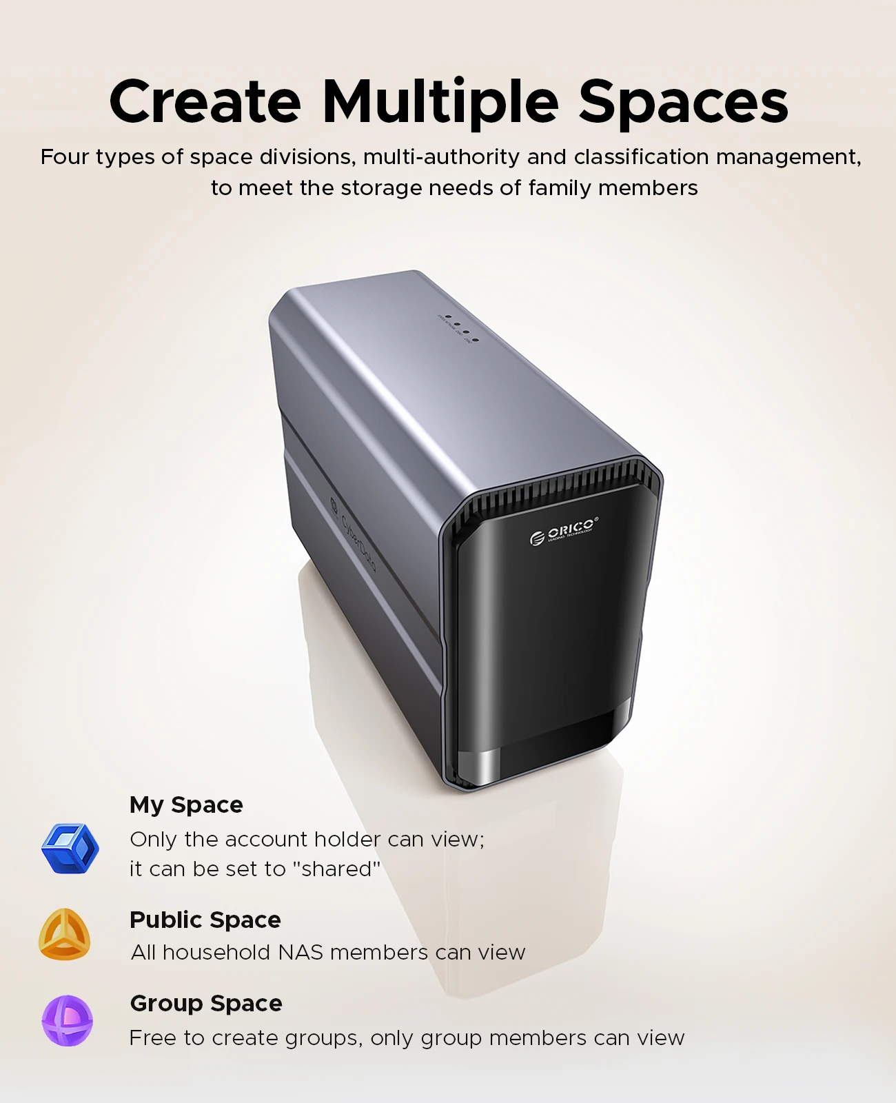 Comprar ORICO-centro de almacenamiento doméstico de 3,5 pulgadas, dispositivo Multimedia con doble Bahía tipo C, NAS, disco duro integrado, cifrado de datos, acceso remoto