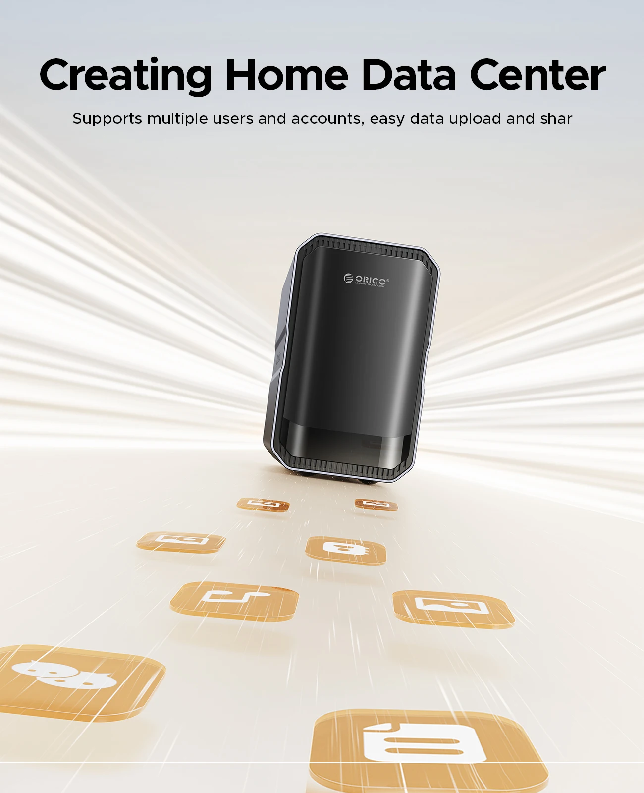ORICO CyberData es para usuarios en general, después de cargar un disco duro SATA que se conecta a la red doméstica, puede almacenar todo el contenido digital en su propio dispositivo de almacenamiento privado