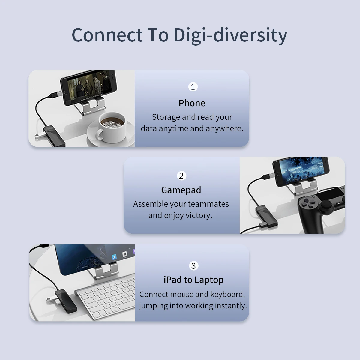 El hub USB incorpora un chip inteligente, voltaje de sobrecarga y función de protección de corriente instantánea para proteger la seguridad del equipo conectado y garantiza que no haya interferencias con bluetooth y wifi