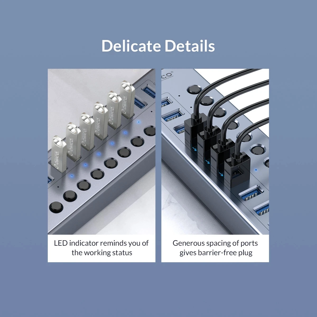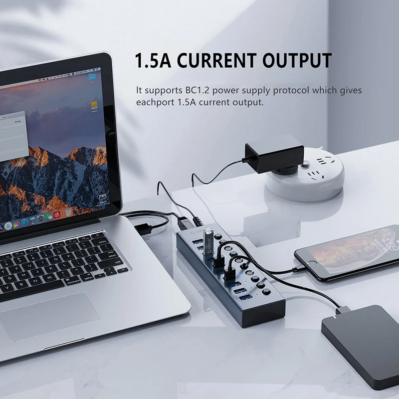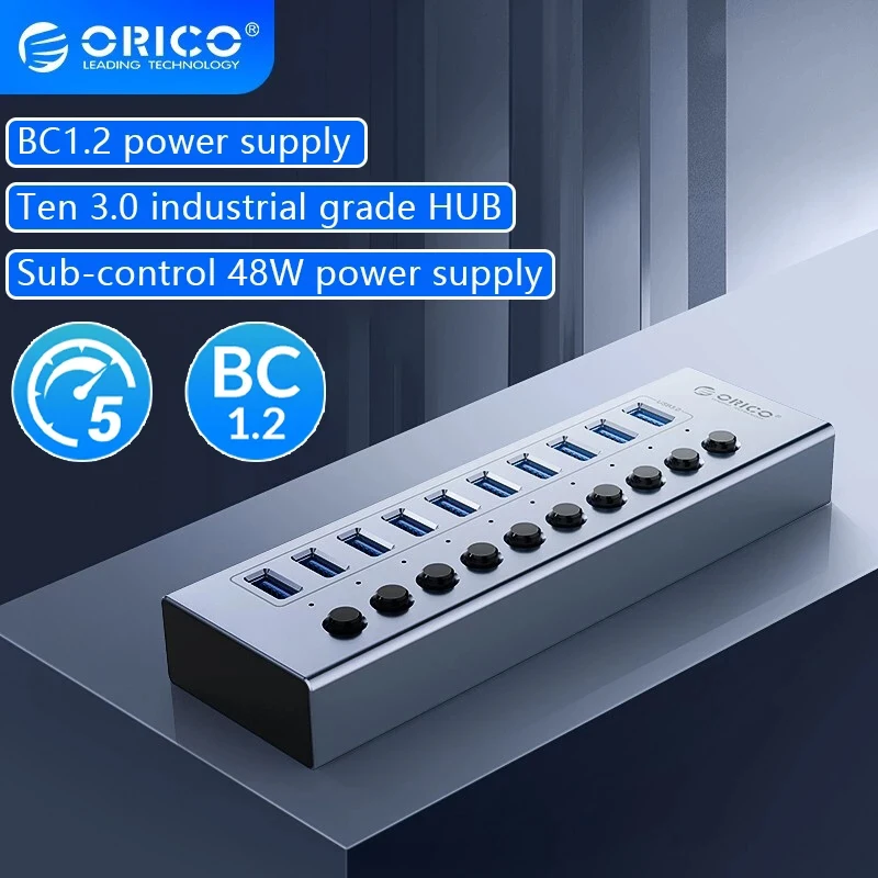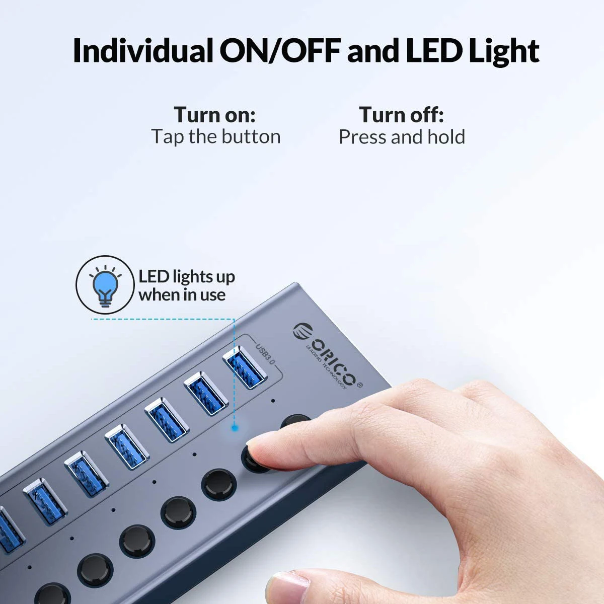 Comprar ORICO-concentrador de puertos USB 10/13, adaptador de corriente divisor Multi USB 3,0, expansor múltiple 3,0, con interruptor para accesorios de ordenador portátil