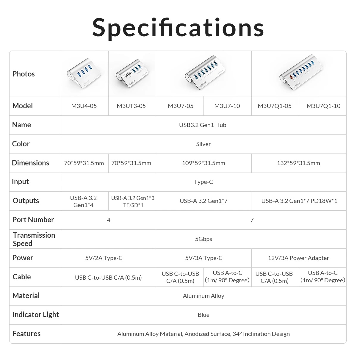 Comprar ORICO-concentrador de red de 4 puertos USB 3,0, HUB de aluminio de alta velocidad, transferencia de 5Gbps, nuevo diseño Mac, Mini divisor de concentrador USB de alta calidad con Cable de datos