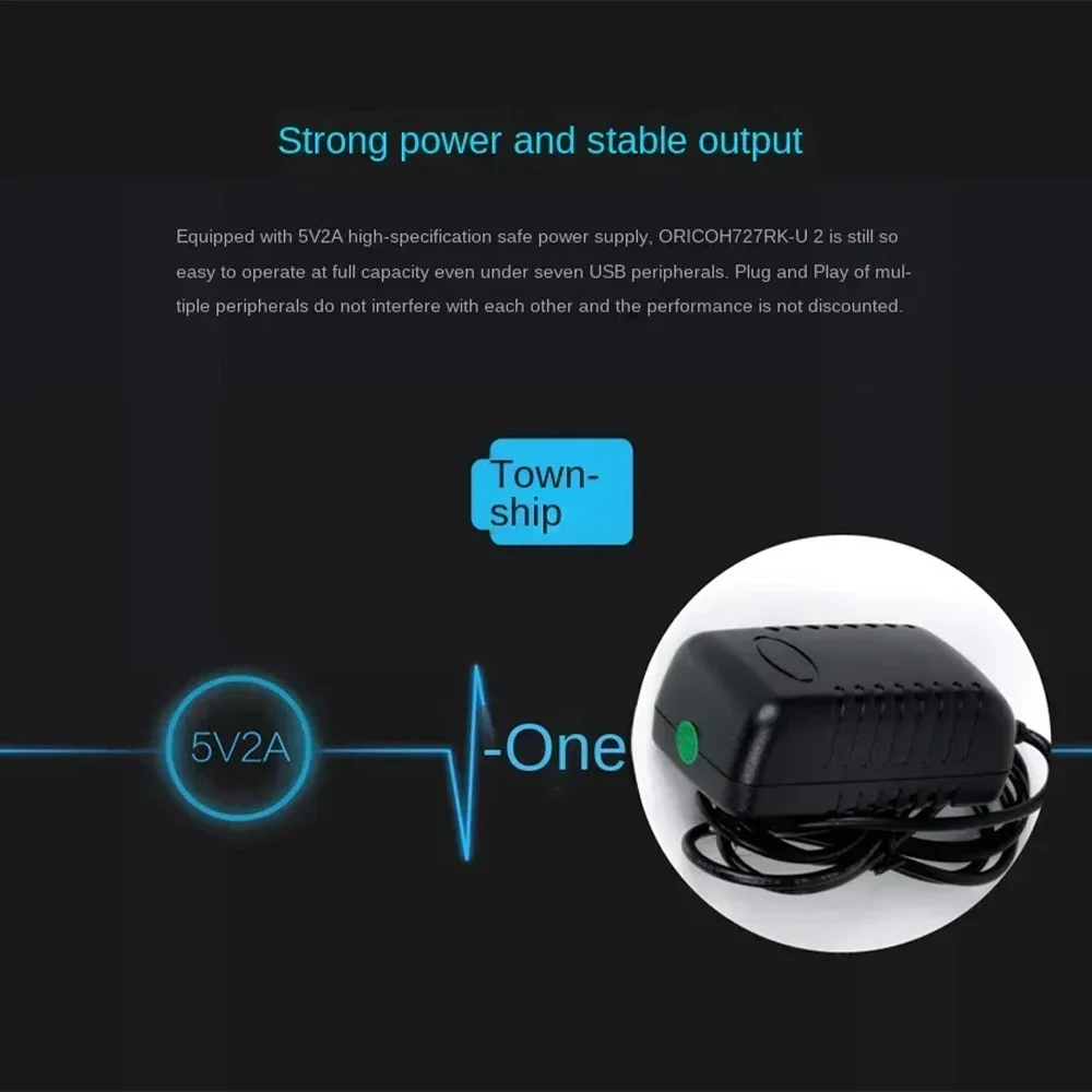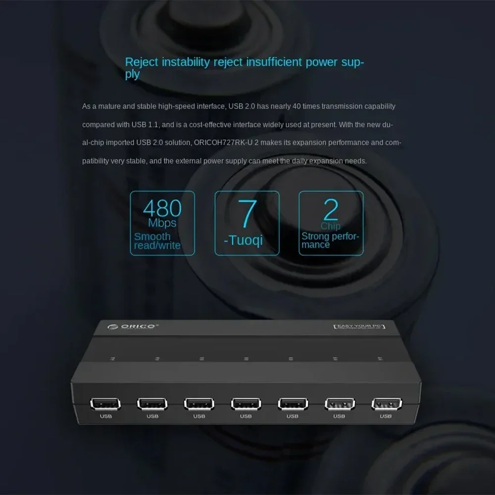 Comprar ORICO-concentrador de red USB 2,0, Adaptador OTG con fuente de alimentación externa, 7 puertos, adecuado para ordenadores portátiles de escritorio