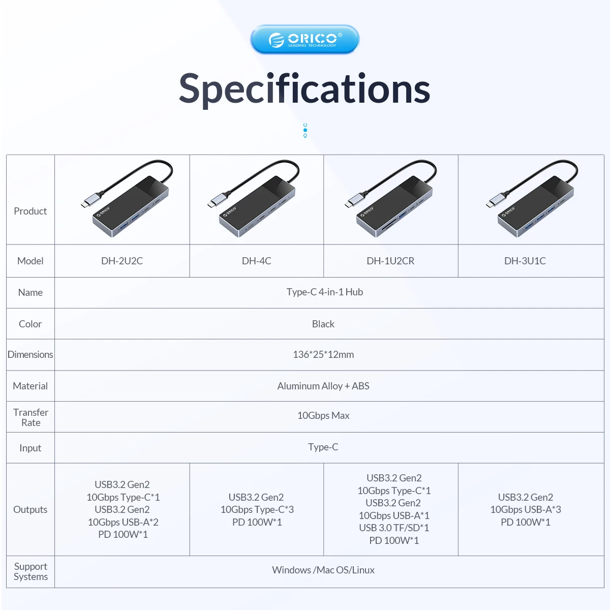 4. Gris PD SD TF: Tipo-C (PD100W)* 1 + USB3.2 Gen2 10Gbps Tipo-C * 1 + USB3.2 Gen2 + 10Gbps 1*1 + USB 3,0 TF/SD * 1