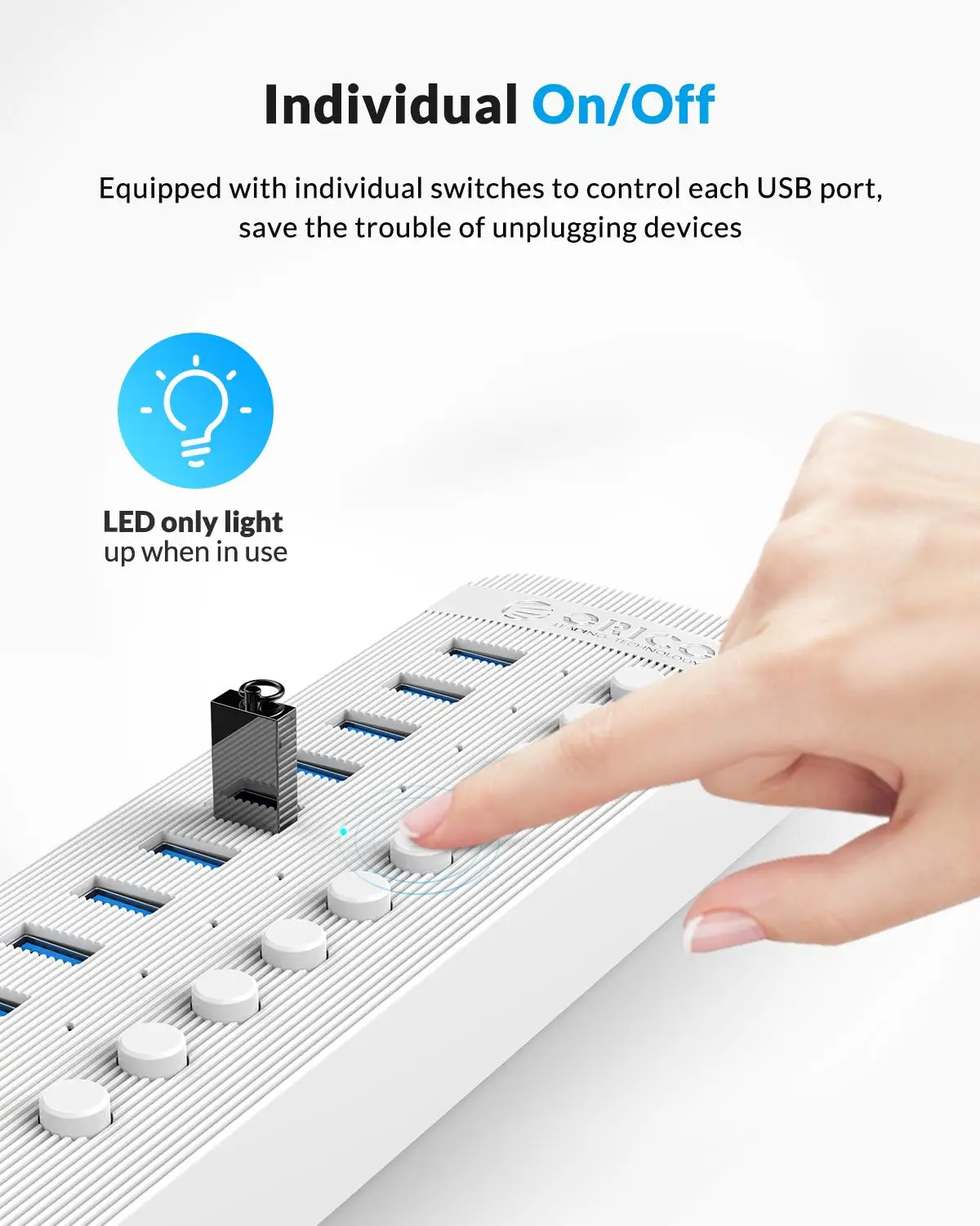 Comprar ORICO-concentrador de red USB 3,0, adaptador de corriente de 16 puertos, expansor múltiple 3,0, con interruptor para PC