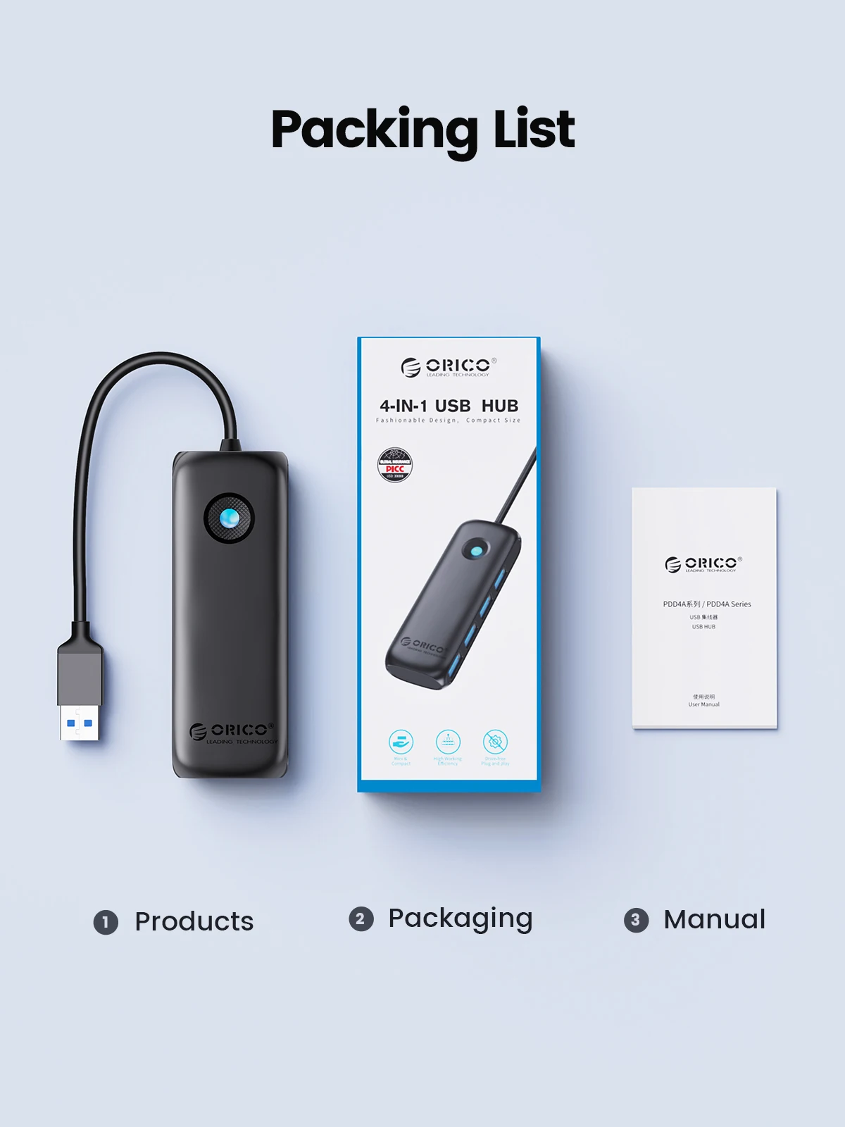 Comprar ORICO-concentrador de red USB 3,0 para PC, adaptador de corriente multiusb 2,0, 4 puertos, multiextensor, OTG, Accesorios de ordenador