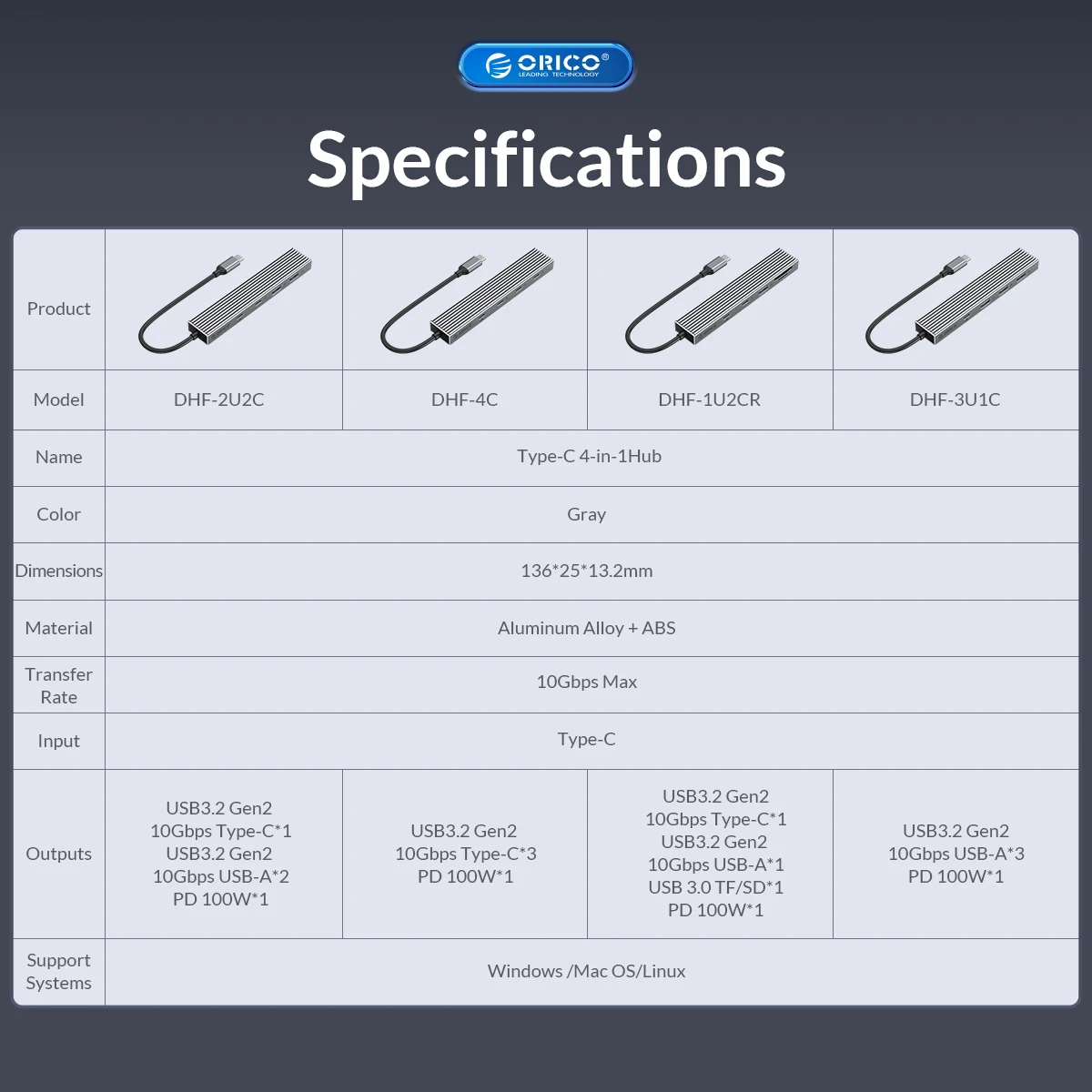 Comprar ORICO-concentrador de red USB 3,2 tipo C para ordenador, accesorio divisor OTG de 10Gbps, 4 puertos PD100 SD TF para Macbook, PC