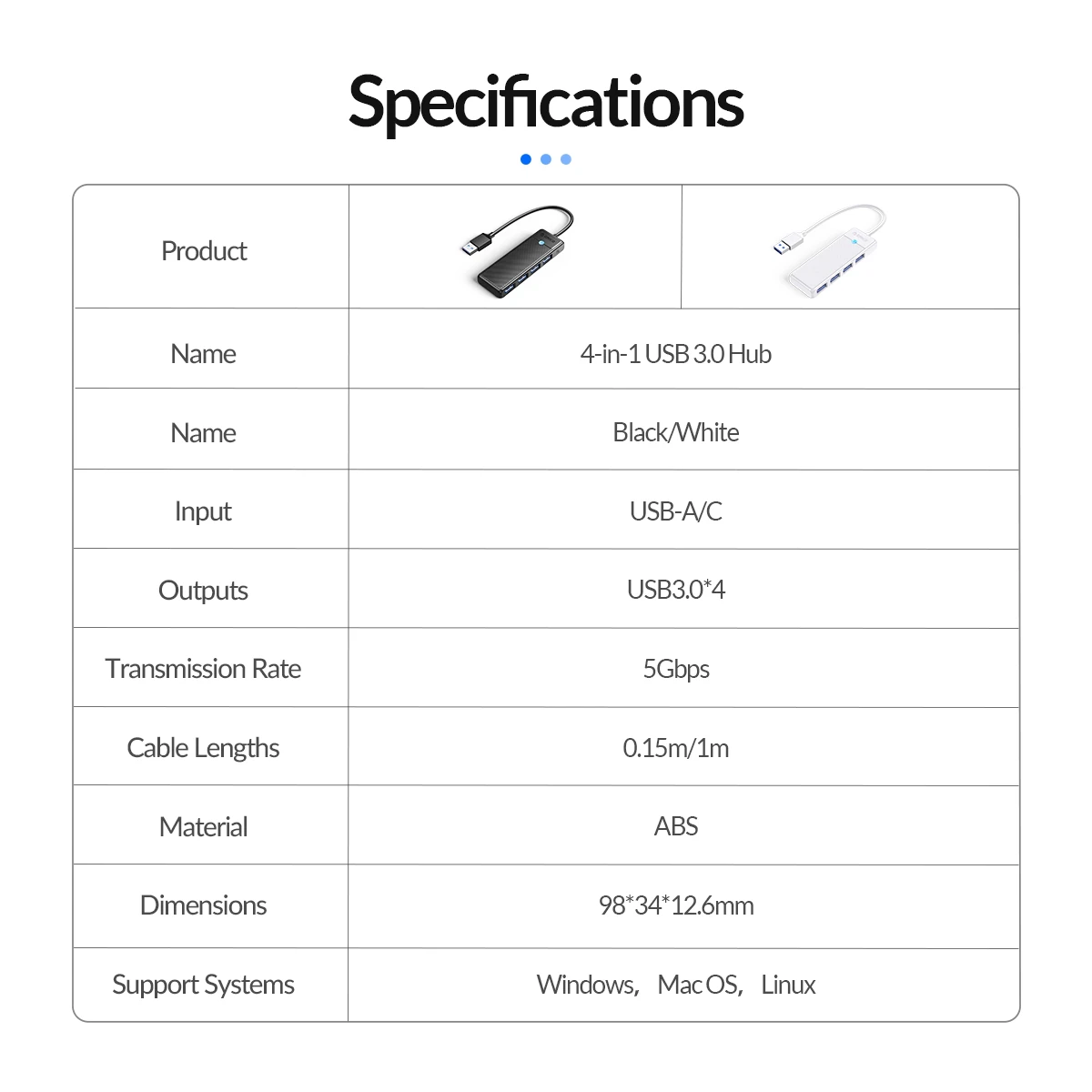 ORICO USB 3,0 Hub transfiere datos hasta 5Gbps, que es 10 veces más rápido que USB 2,0. Las películas HD se pueden transmitir en segundos. Compatible con USB 2,0, 1,1. Lectura simultánea de dos SSD de 1TB 2,5 "sin alimentación. Compatible con la función OTG, la función OTG no solo necesita soporte de Hub, sino también soporte de teléfono móvil.