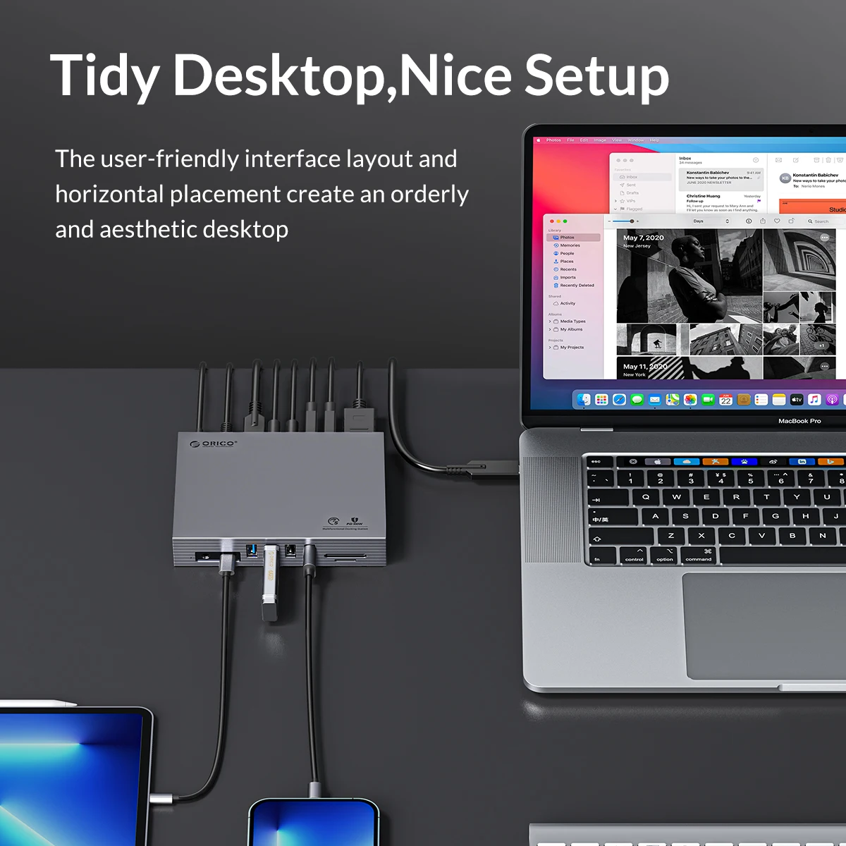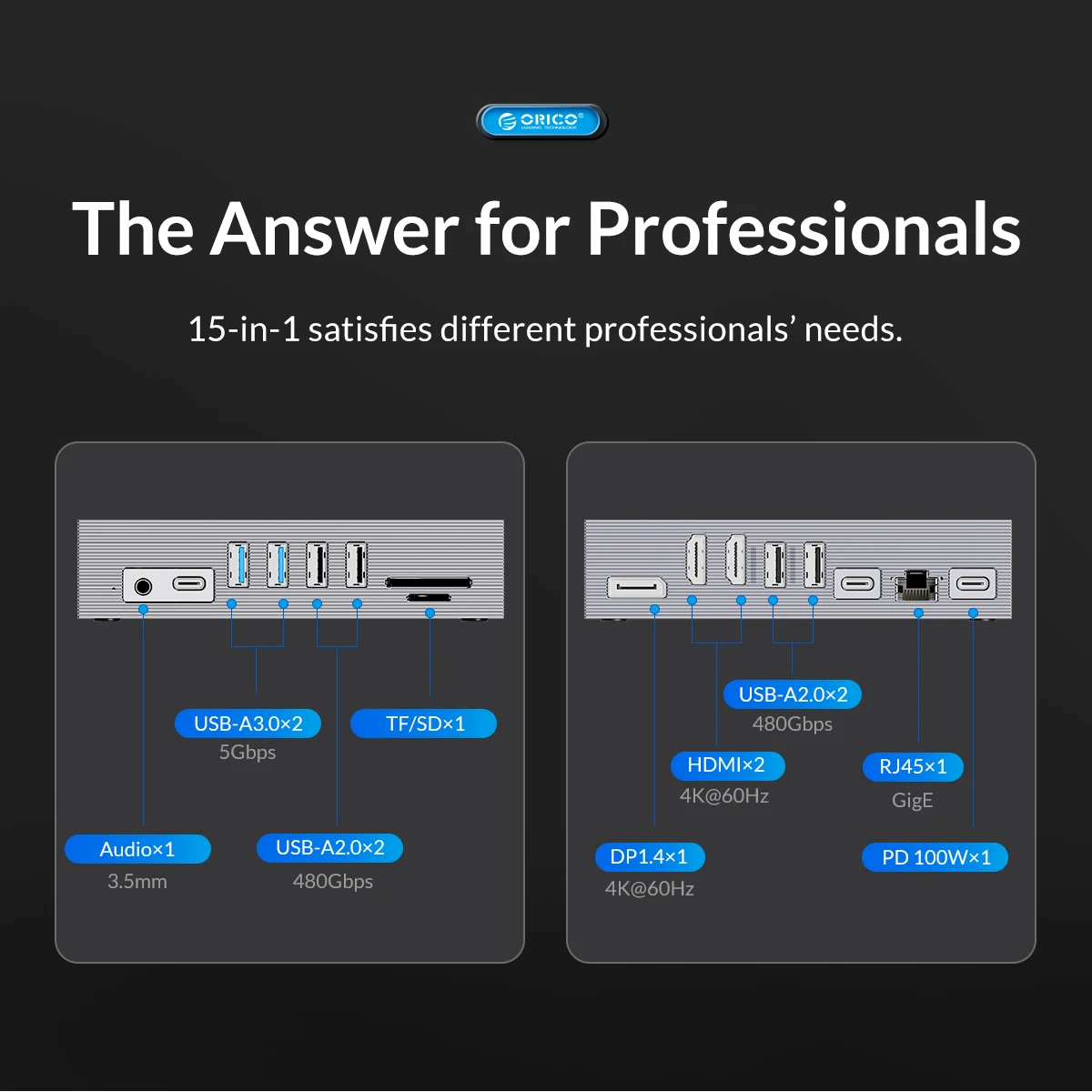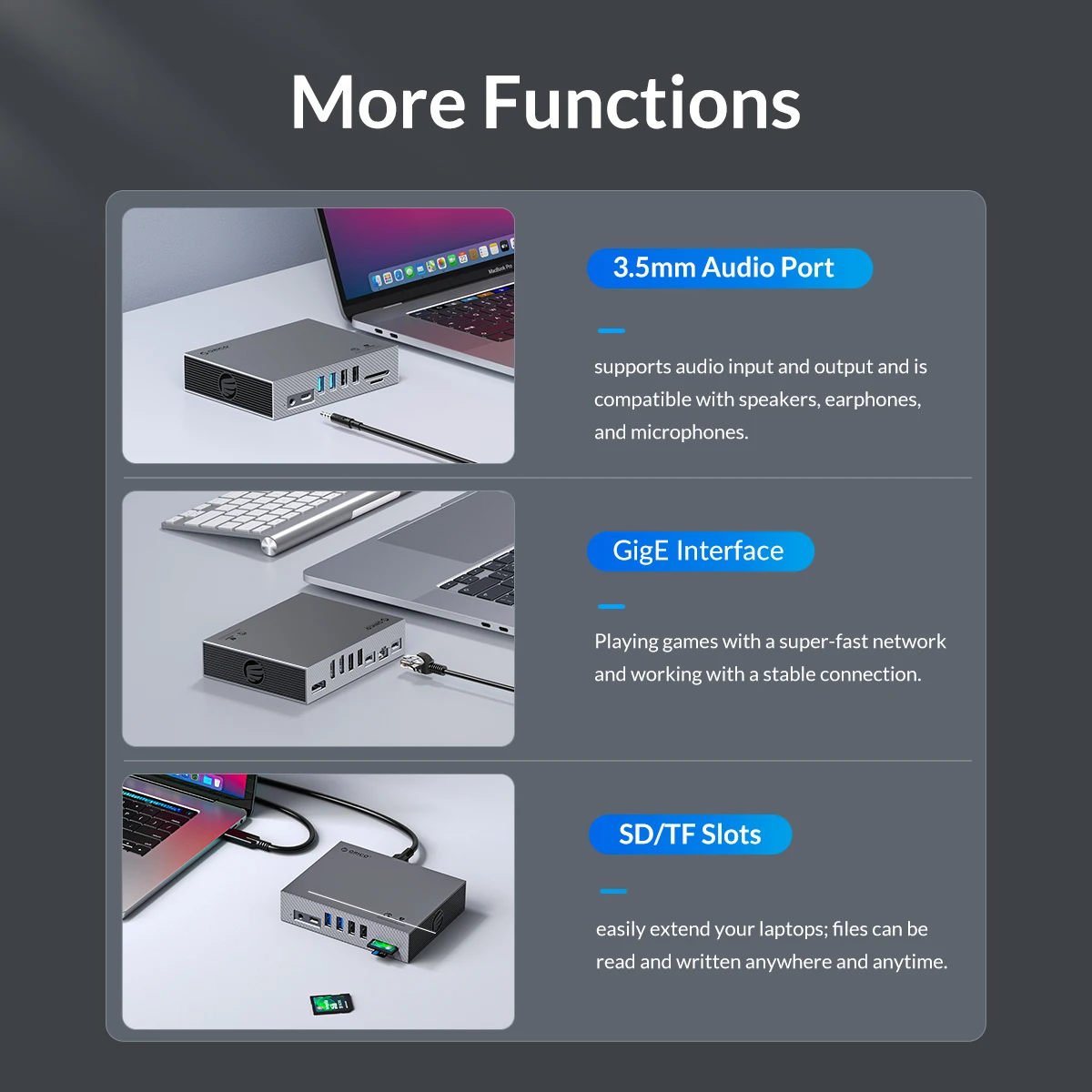 ORICO-concentrador de red USB tipo C a Multi HDMI, estación de acoplamiento compatible con MacBook Pro, RJ45, OTG, lector de tarjetas SD, 4K60Hz, PD100W, USB 3,0