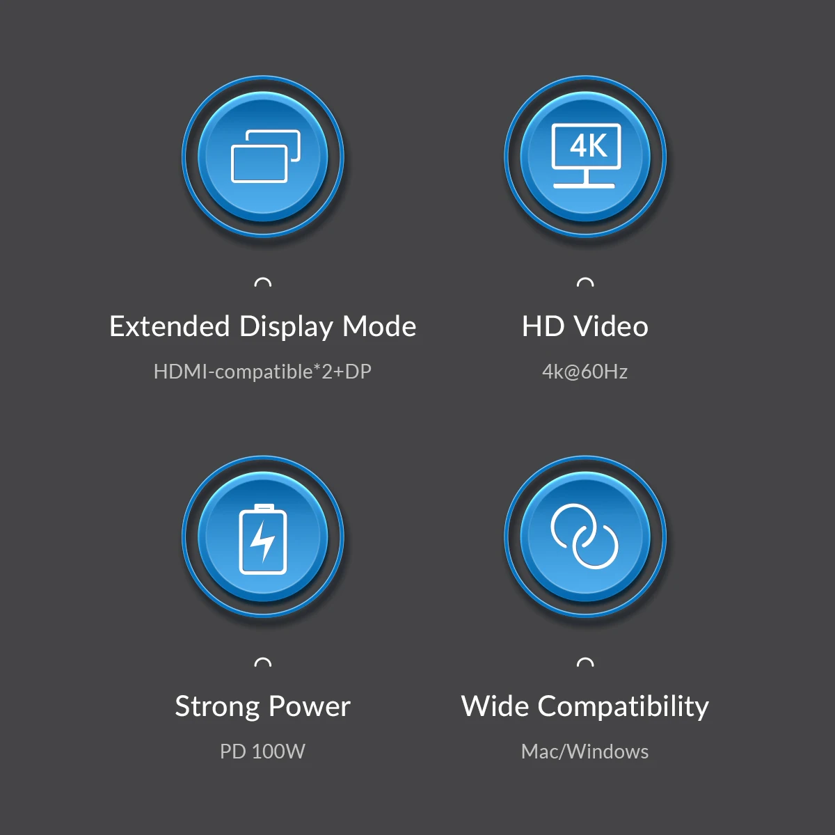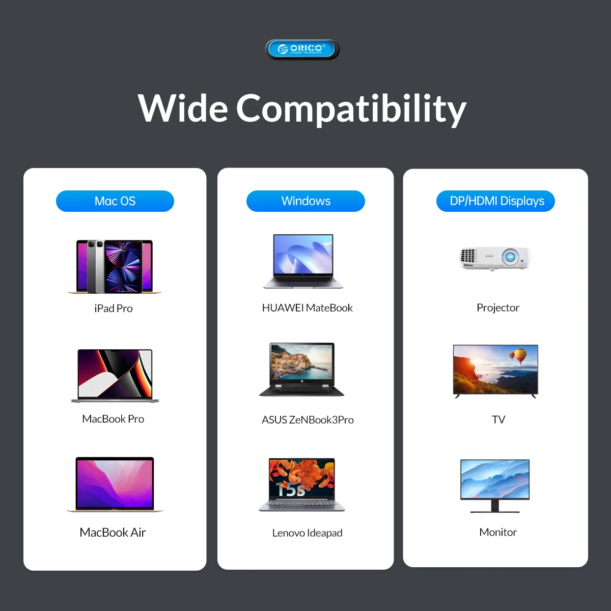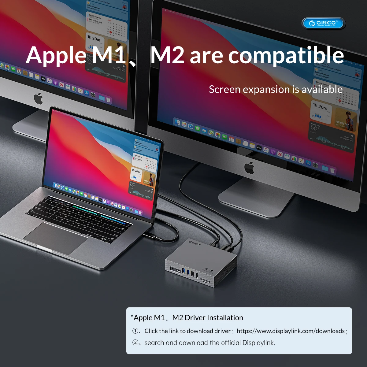ORICO-concentrador de red USB tipo C a Multi HDMI, estación de acoplamiento compatible con MacBook Pro, RJ45, OTG, lector de tarjetas SD, 4K60Hz, PD100W, USB 3,0