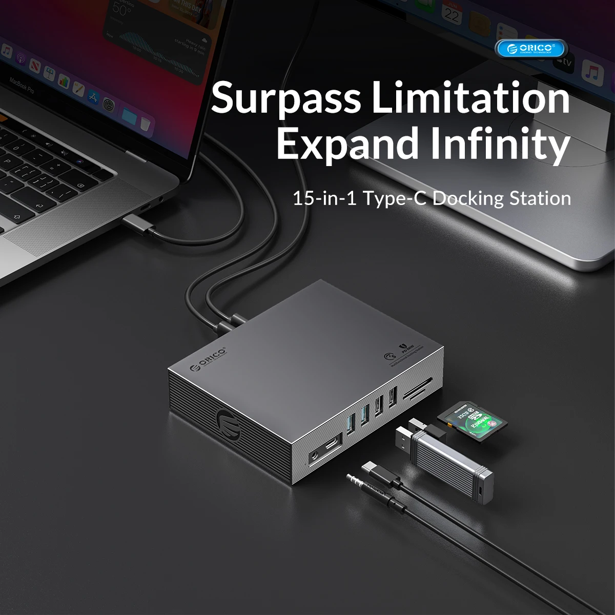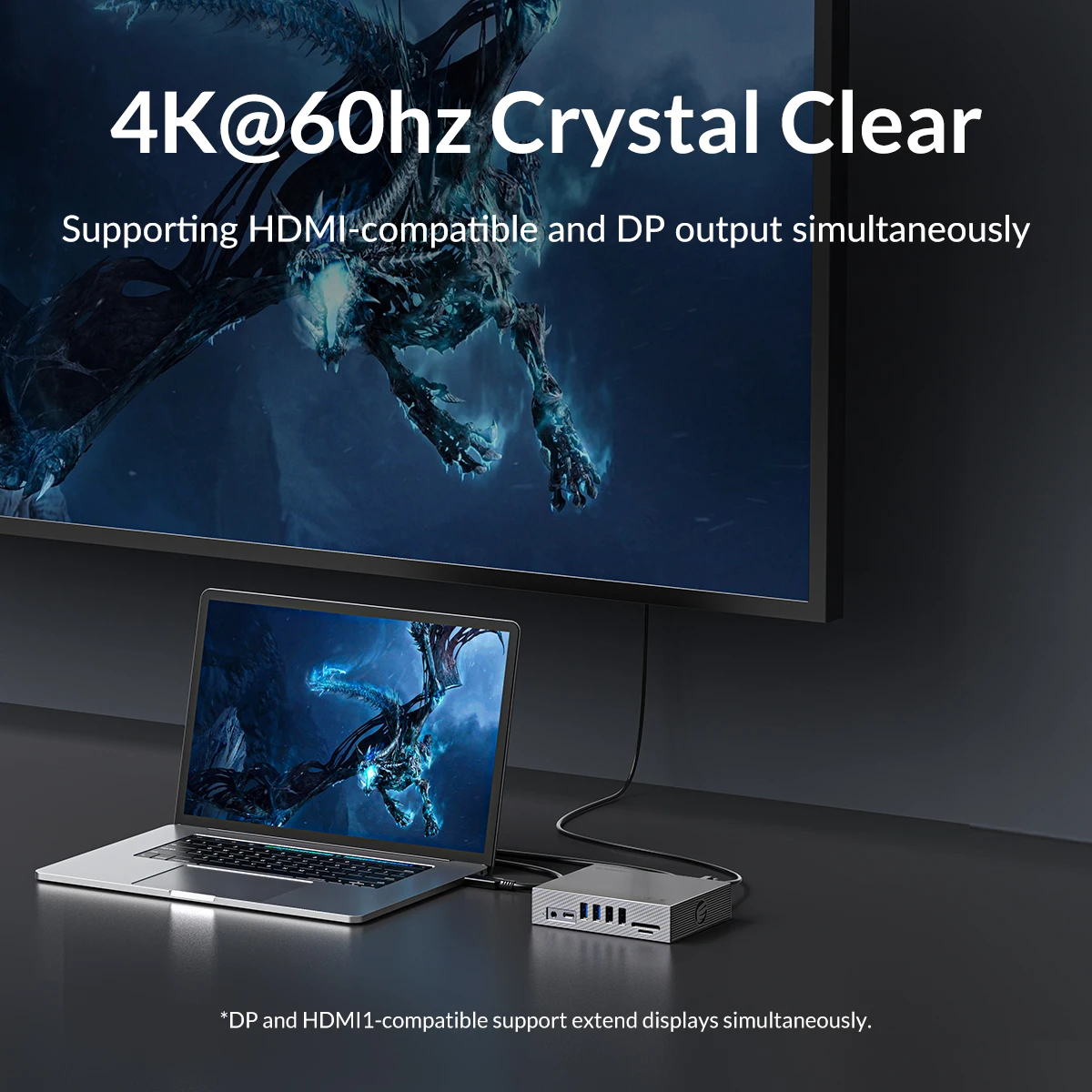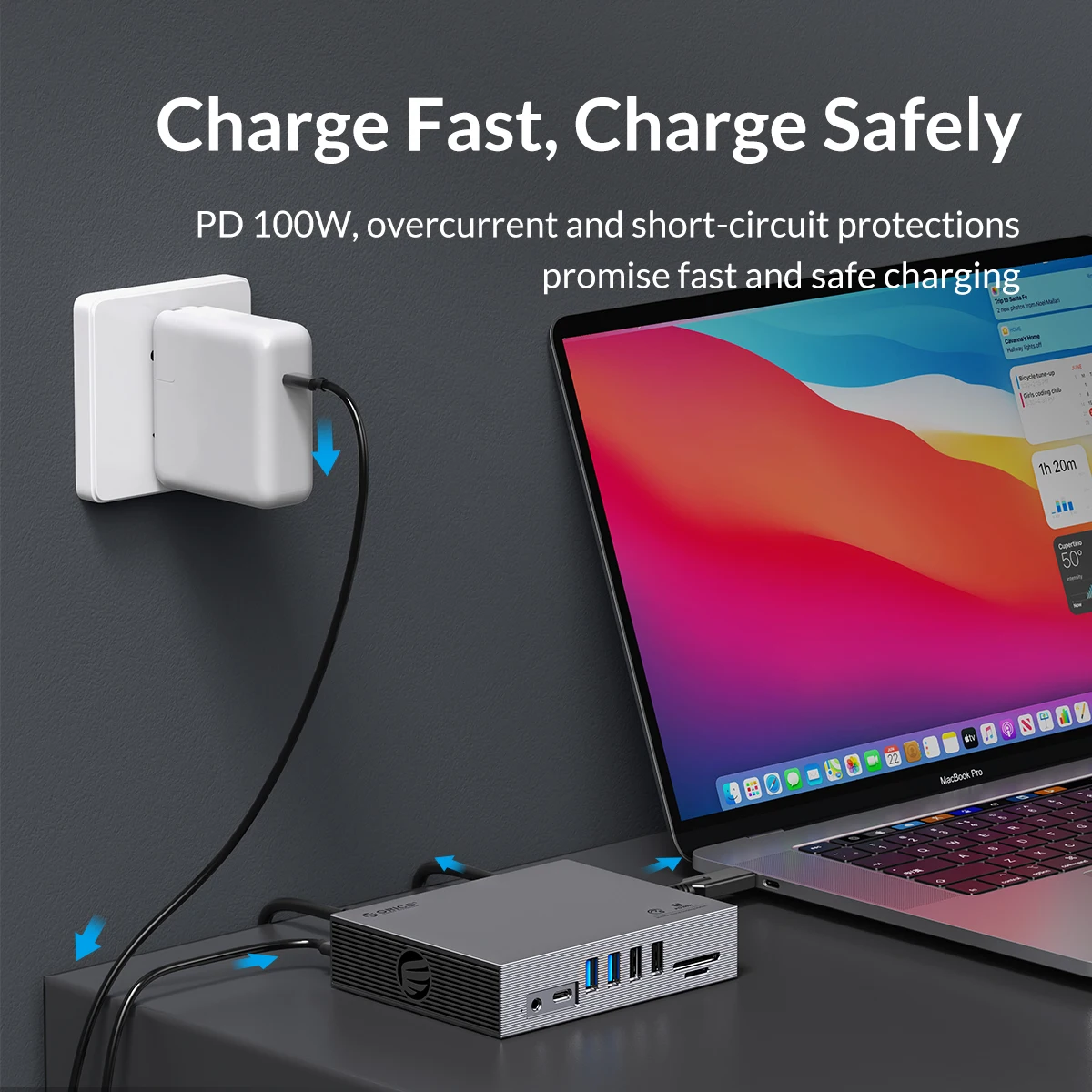 Comprar ORICO-concentrador de red USB tipo C a Multi HDMI, estación de acoplamiento compatible con MacBook Pro, RJ45, OTG, lector de tarjetas SD, 4K60Hz, PD100W, USB 3,0