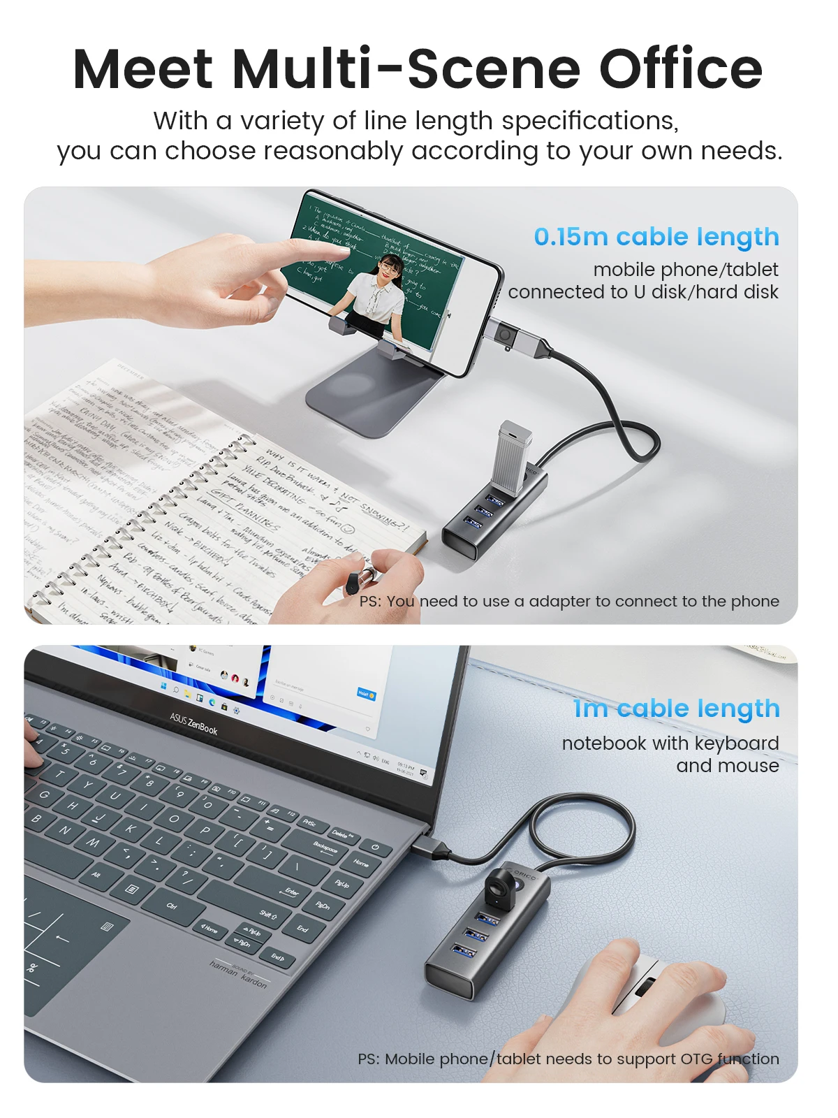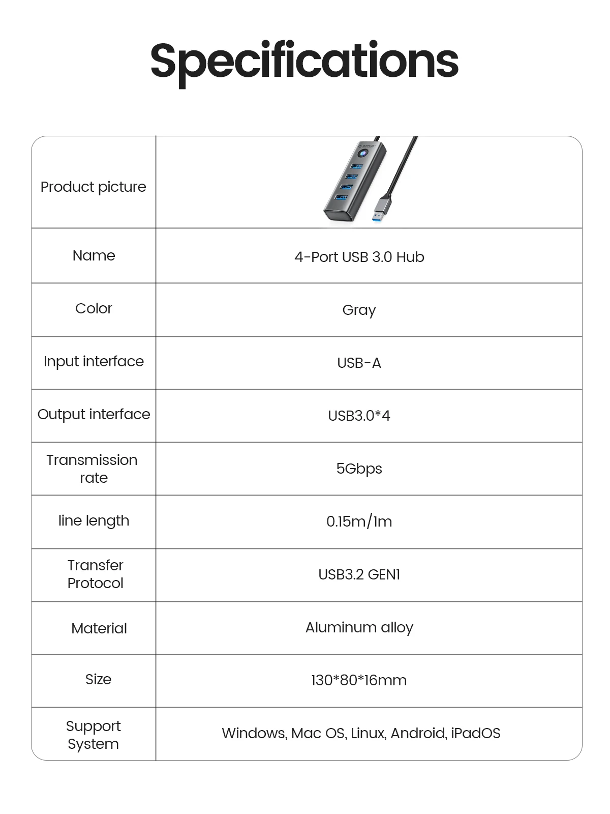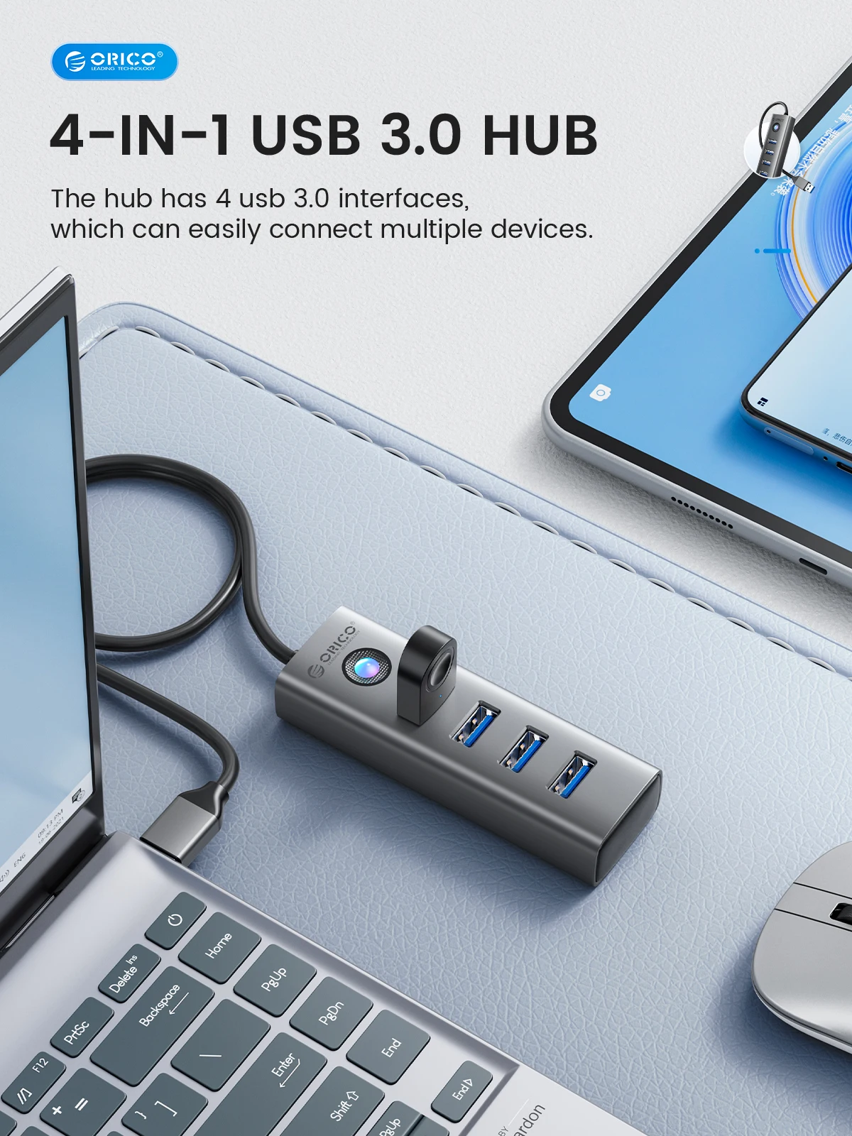 Comprar ORICO-concentrador de red USB tipo C a USB 3,0, adaptador divisor de 4 puertos, 5Gbps, para MacBook Pro, iPad Pro, Xiaomi, Hub de aluminio de alta velocidad