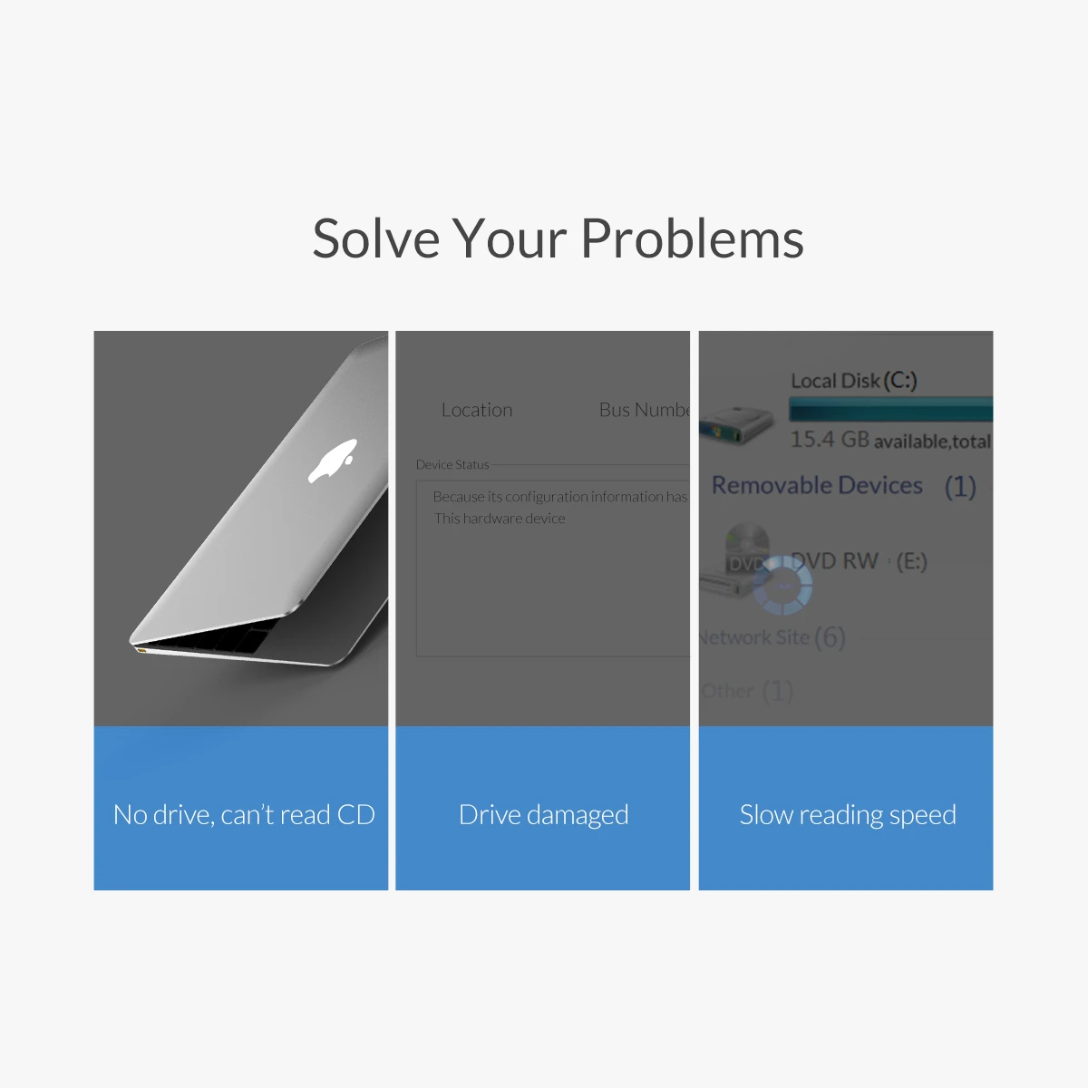Comprar ORICO-controlador óptico externo USB 3,0, Combo de CD/DVD-ROM, DVD, RW, ROM, grabador para escritorio, portátil, Windows, Mac OS