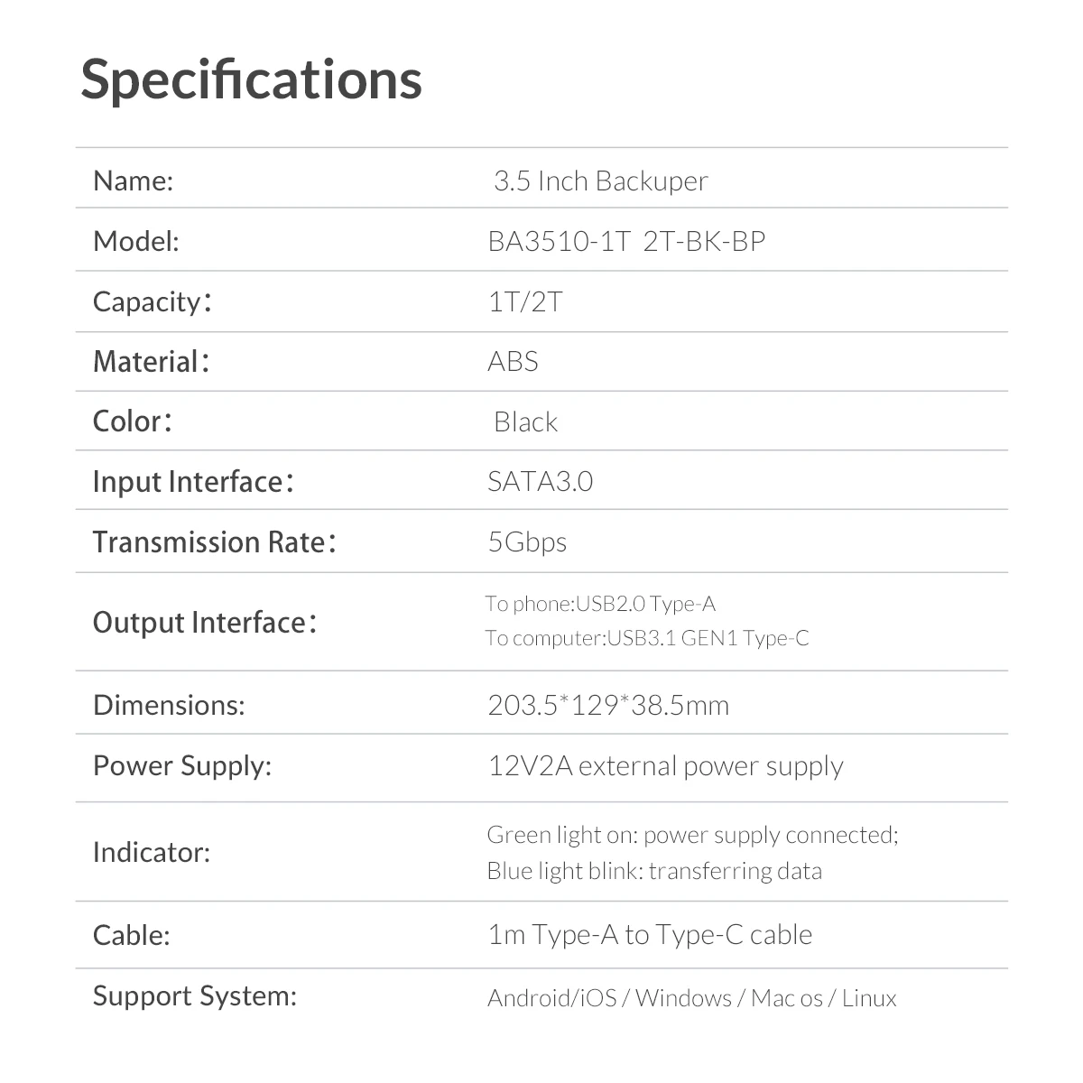 Comprar ORICO-Copia de seguridad de datos de escritorio, 3,5 pulgadas, 3,5 pulgadas, teléfono Android a PC, ordenador portátil, Mac, Whatsapp con HDD, copia de seguridad y sincronización
