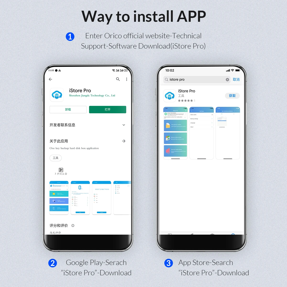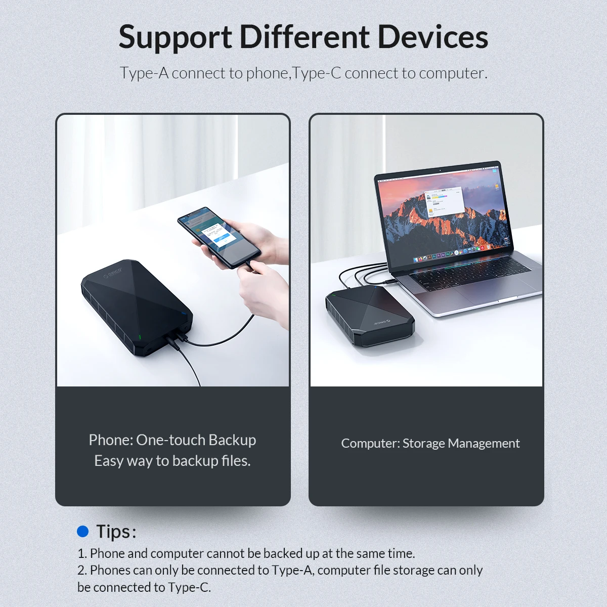 - Install the free ORICO Mobile Backup app on an iOS or Android mobile device, and back up all of the photos and videos