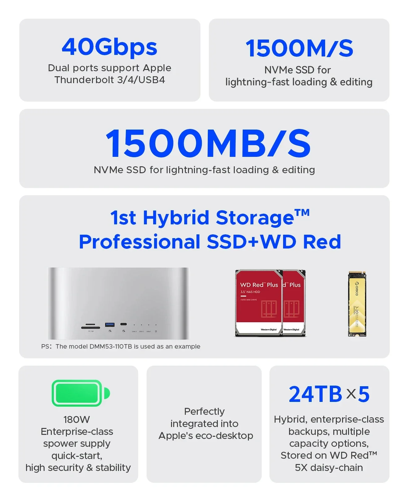 Comprar ORICO Data Matrix M.2 NVME SSD carcasa 40Gbps 8 en 1 Thunderbolt 4 USB HUB Dock 8K @ 30Hz compatible con tarjeta de lectura CF SD TF para PC