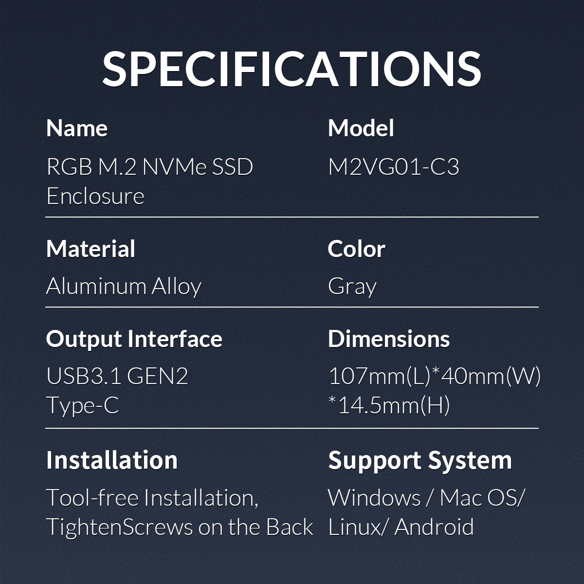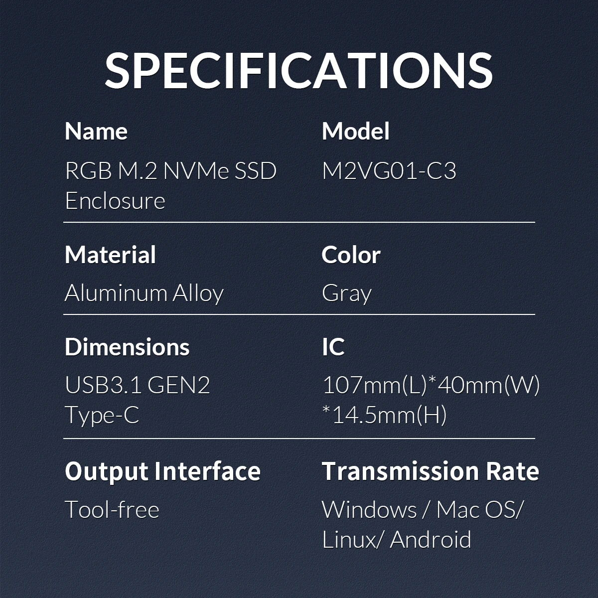 2.ORICO M2VG01-C3 es una caja de disco duro M.2 NVME SSD que admite velocidad USB3.1 10Gbps.