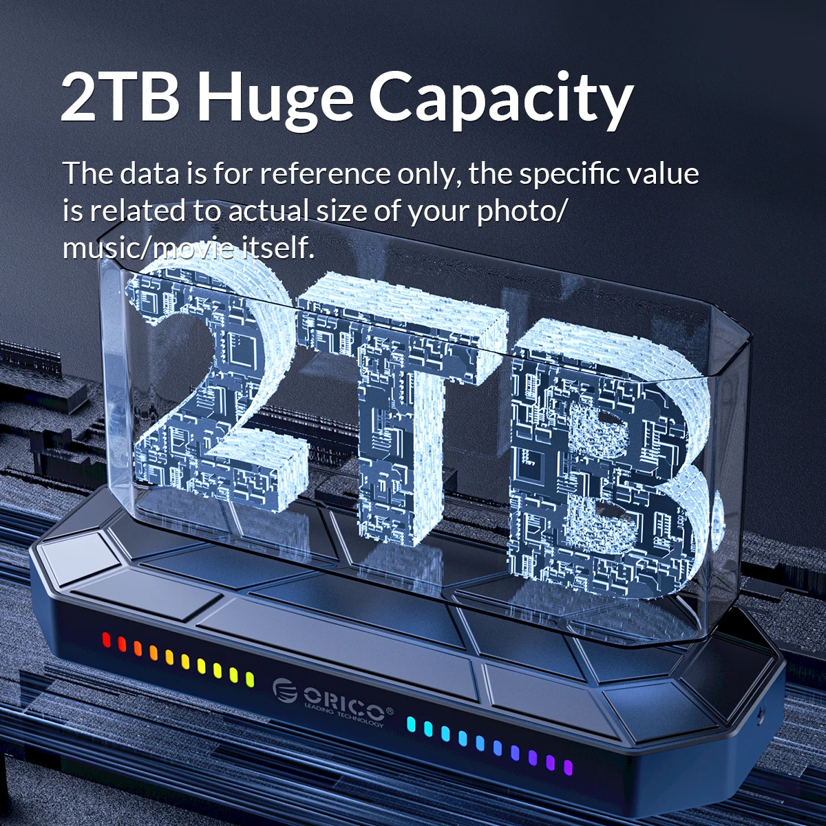 7 diseño de iluminación RGB fresco (la luz roja siempre está encendida sin el SSD instalado cuando la alimentación está encendida; El rojo, amarillo, verde, azul y púrpura en espera cambian alternativamente lentamente, Y la lectura y escritura parpadean rápidamente; La respiración azul del sueño).