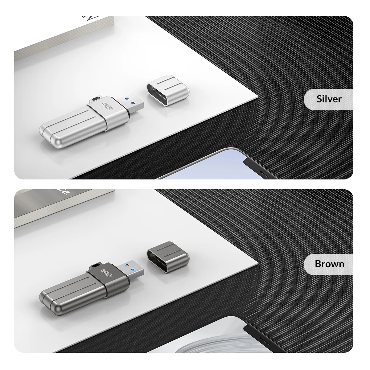 La unidad flash ORICO USSD USB3.2 Gen1 cuenta con una carcasa de metal elegante pero resistente que protege la unidad de golpes inesperados.