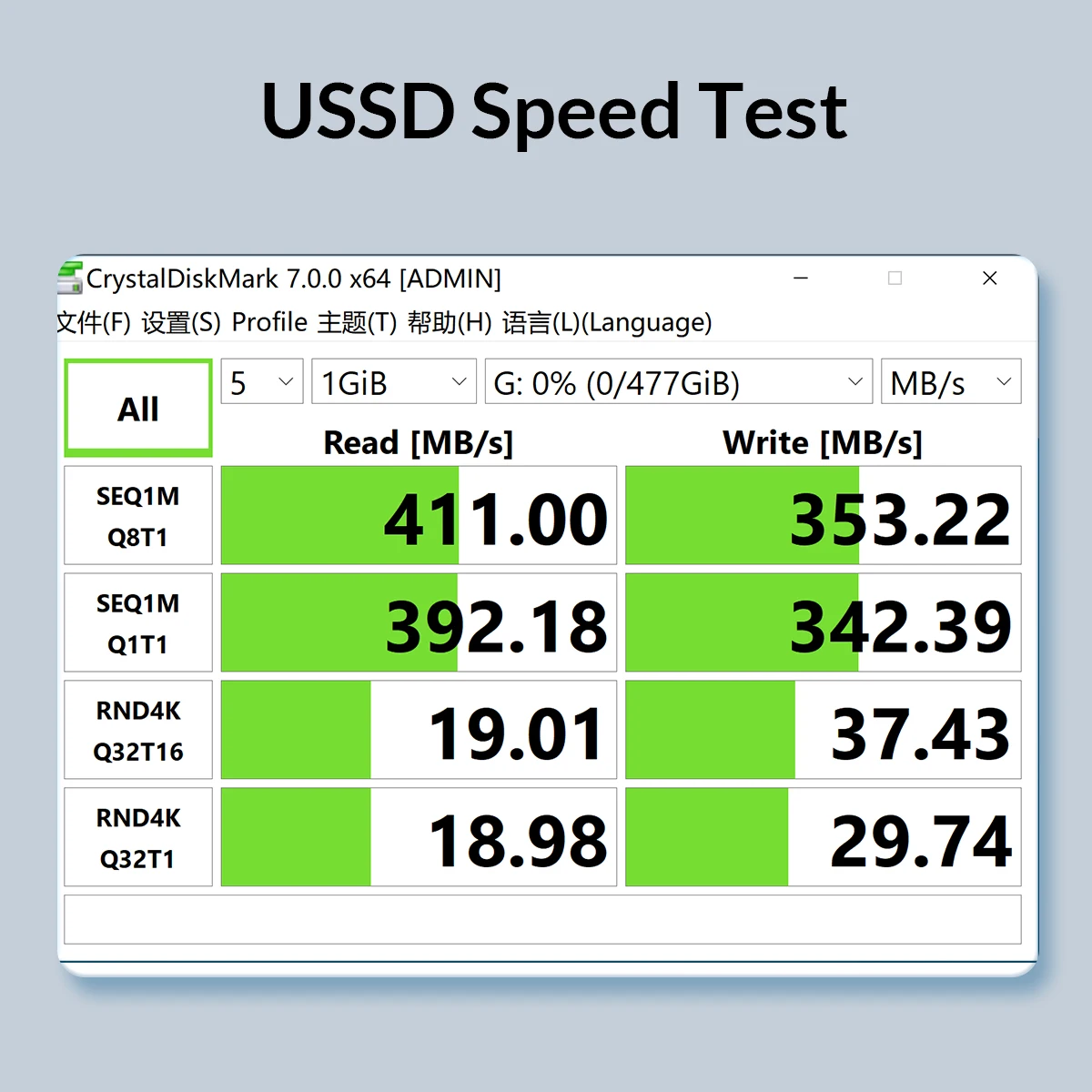 La unidad flash USSD USB3.2 Gen1 lee un archivo de 60GB en el entorno de prueba del laboratorio ORICO, la velocidad de transmisión es estable.3. Carcasa de metal elegante y duradera ---- Disipación rápida del calor