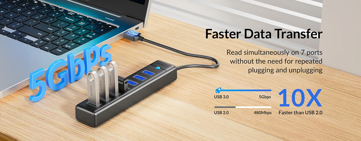 Comprar ORICO-Divisor de 7 puertos USB 3,0, HUB de transmisión de alta velocidad tipo C, expansión de ordenador portátil, accesorios de ordenador para Xiaomi