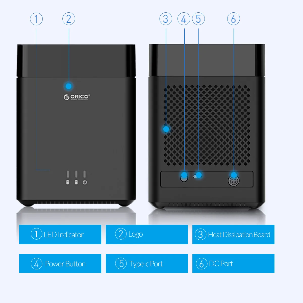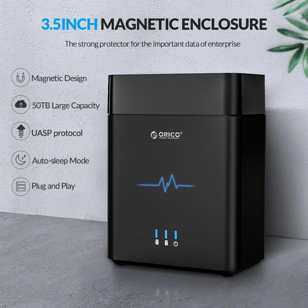 Comprar ORICO DS Series 2 Bay 3,5 ''Tipo C Caja de disco duro Tipo magnético USB3.1 Gen1 5Gbps HDD Caja compatible con alimentación UASP 12V4A