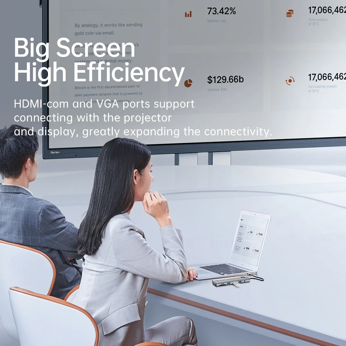 3.AUD gris 10 en 1 de 30 Hz: USB-A*3 (5 Gbps) + 3,5 mm*1 + SD y TF*1 + compatible con HDMI*1(4K@30 Hz)+ VGA*1 +RJ45(GigE)*1 +PD100W*1